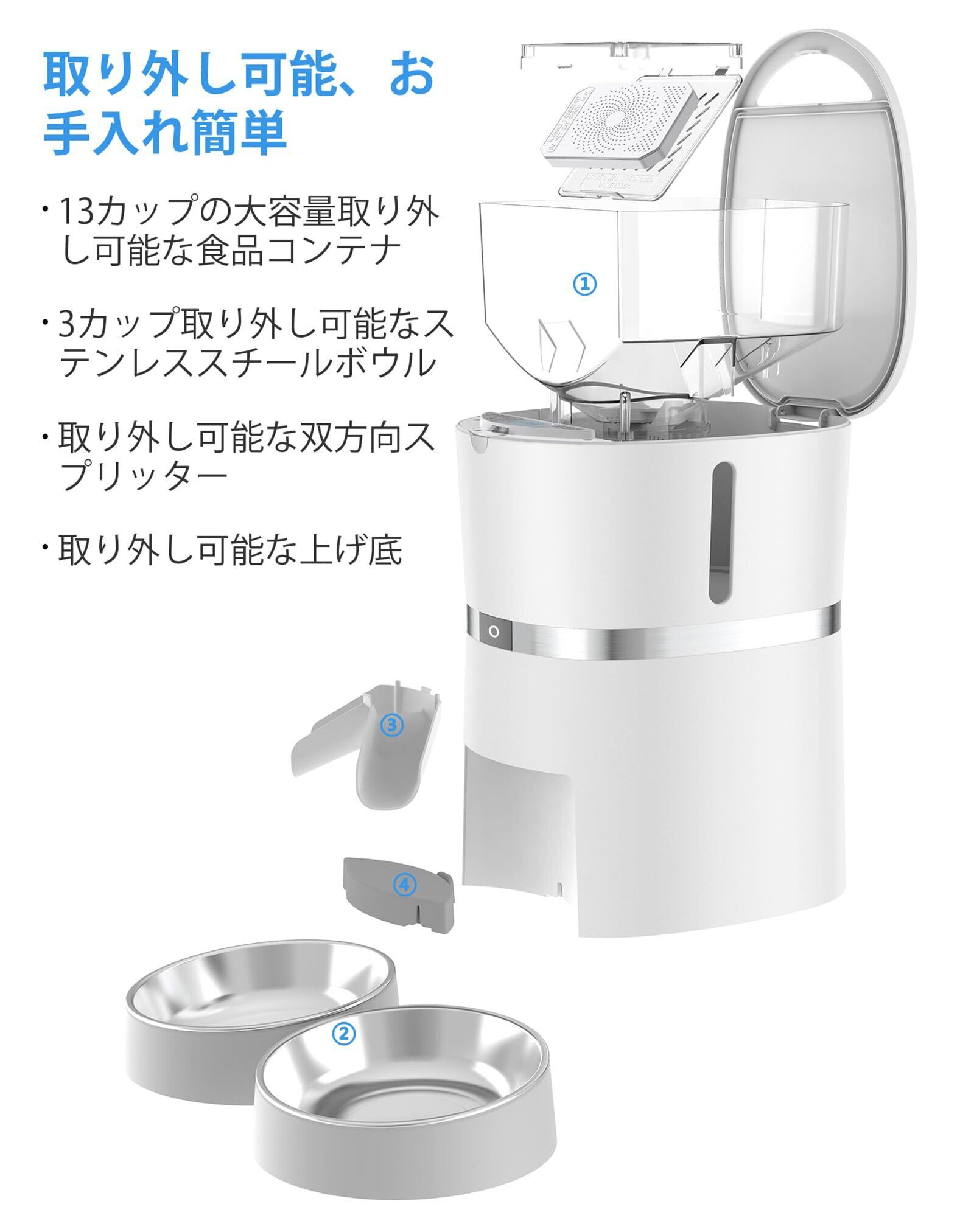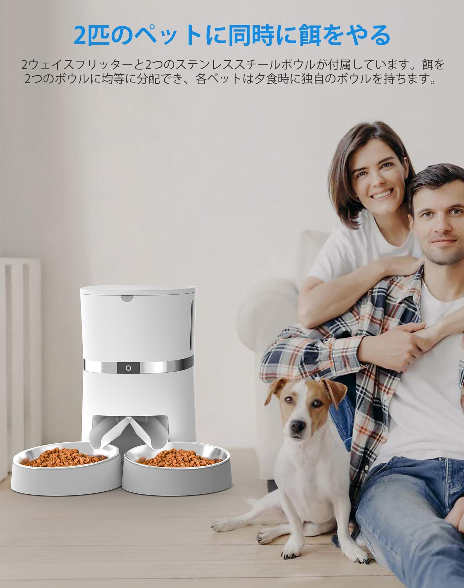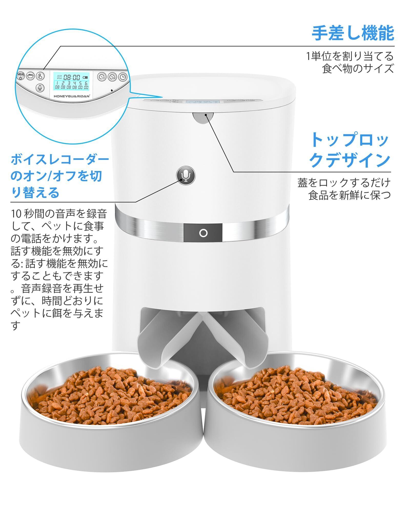 【在庫処分】WellToBe 自動給餌器 猫 2匹用 自動餌やり機 タイマー式 2WAY給電 手動給餌可 中小型犬 猫用 多頭飼い 自動餌 定時定量 1日6食 健康管理 ネコ いぬ エサやり 留守も安心 日本語対応説明書付き ホワイト | wakuwakuland