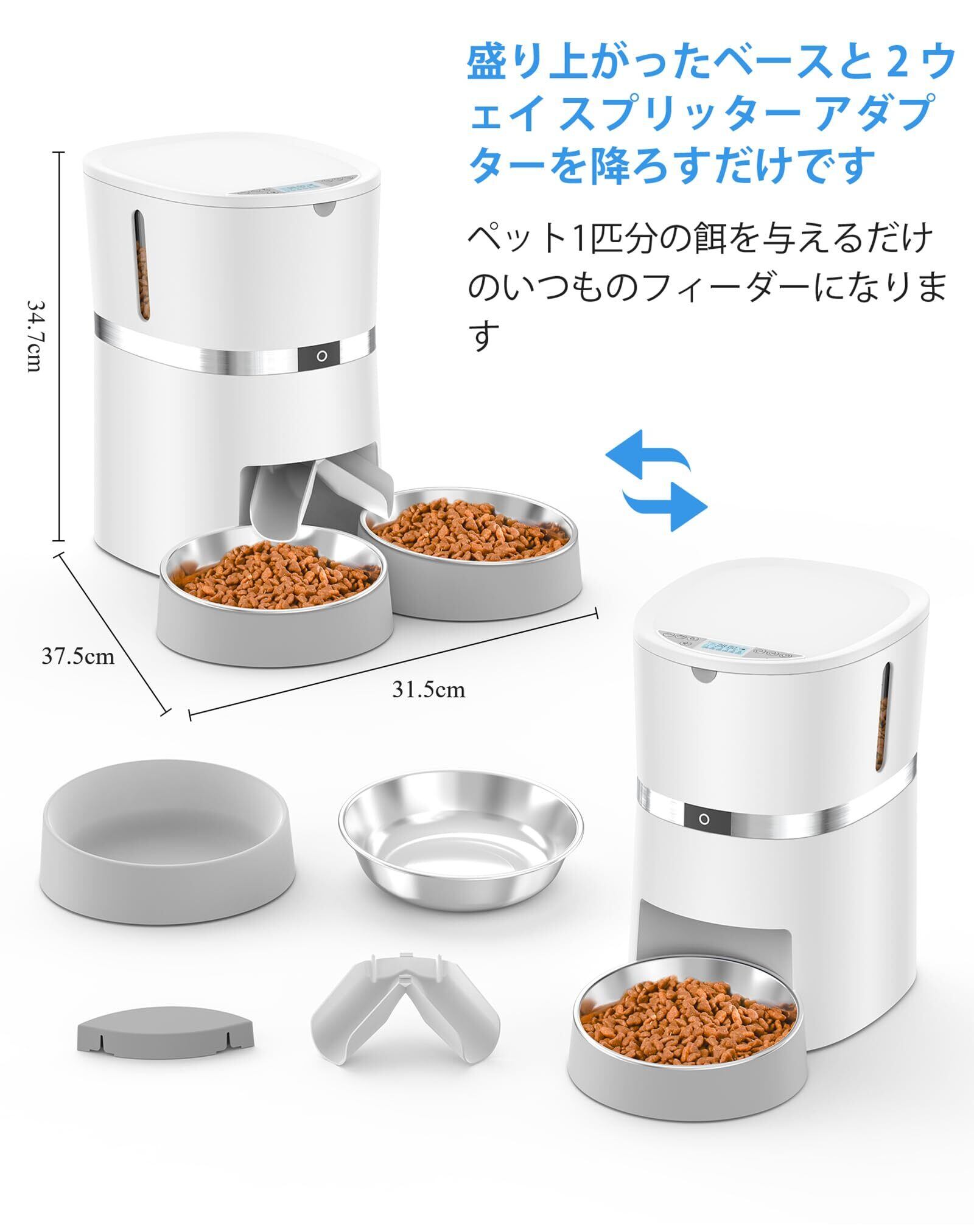 WellToBe 自動給餌器 猫 2匹用 自動餌やり機 タイマー式 2WAY給電 手動給餌可 中小型犬 猫用 多頭飼い 自動餌 定時定量 1日6食 健康管理 ネコ いぬ エサやり 留守も安心 日本語対応説明書付き ホワイト