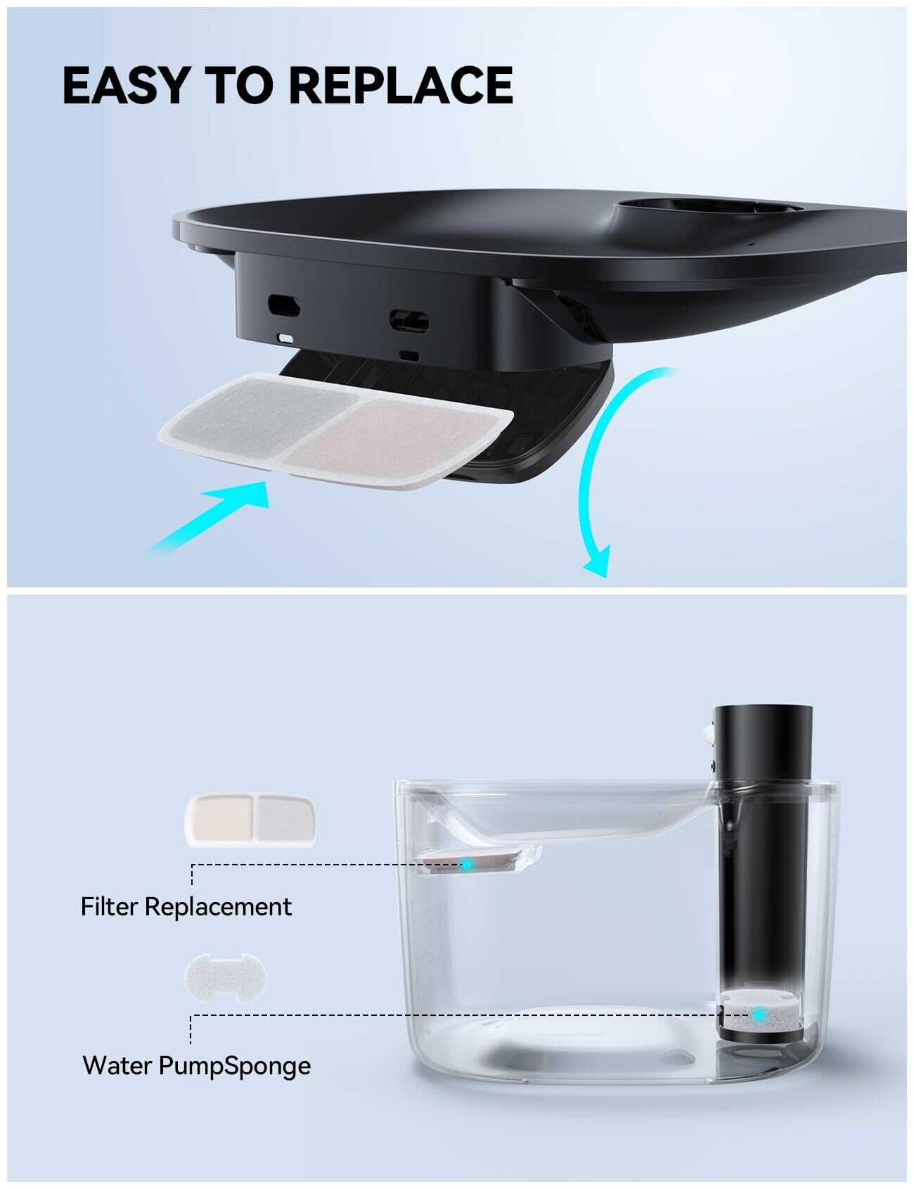 FEELNEEDY 猫 給水器 コードレス 交換用フィルター 6個+スポンジ6個 型番FN-W07専用