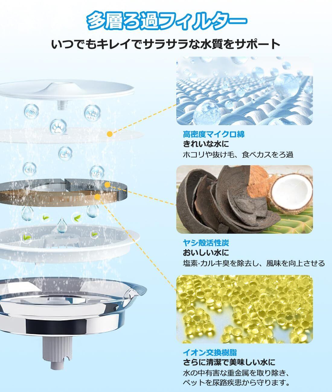【軟水化フィルター】三層高機能フィルターが抜け毛、嫌な臭いや水の中有害な重金属をしっかりろ過し、いつでもキレイでサラサラな水質をサポート