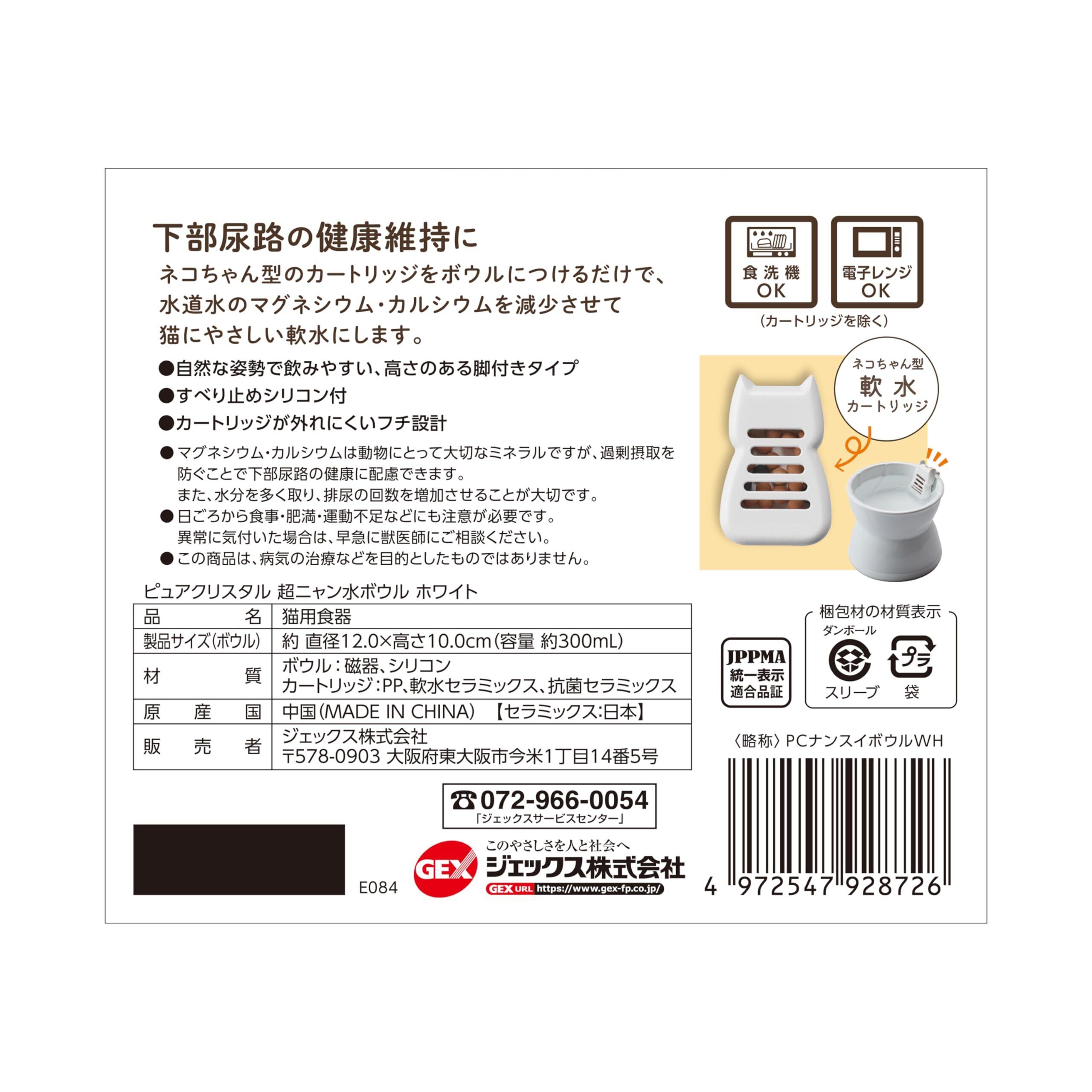 ジェックス ピュアクリスタル 超ニャン水ボウル ホワイト 陶器製 脚付き 軟水化カートリッジ付き