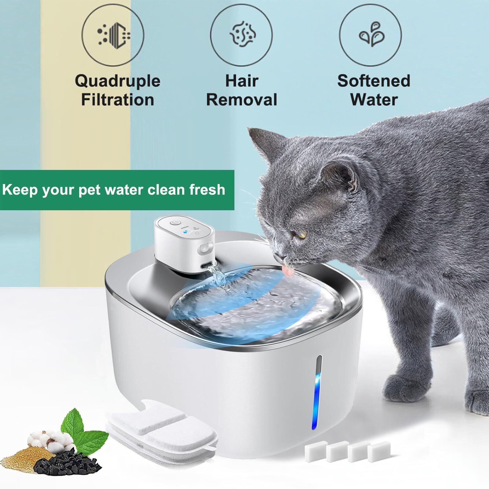 三層構造:ヤシ殻活性炭の層を高密度マイクロ綿で挟んだ三層構造です。目では見えにくいペットの抜け毛や埃だけでなく、重金属や塩素も濾過します。これにより、猫や犬が清潔な水を飲むことができ、尿路感染のリスクを低減します。