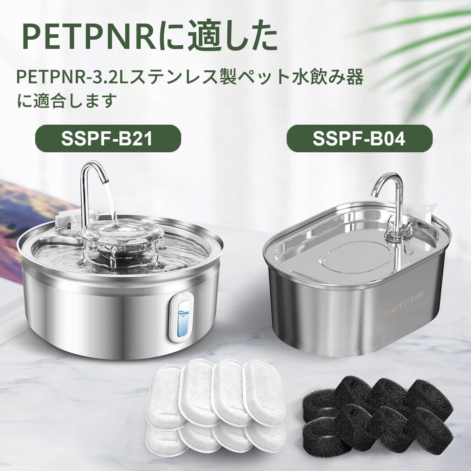 【適用バリエーション】PETPNR SSPF-B04 / SSPF-B21 ステンレス ペット用自動給水器 PETPNR 猫犬用 水飲み器 フィルター。PETPNR ブランドのフィルターを購入していることを確認してください。