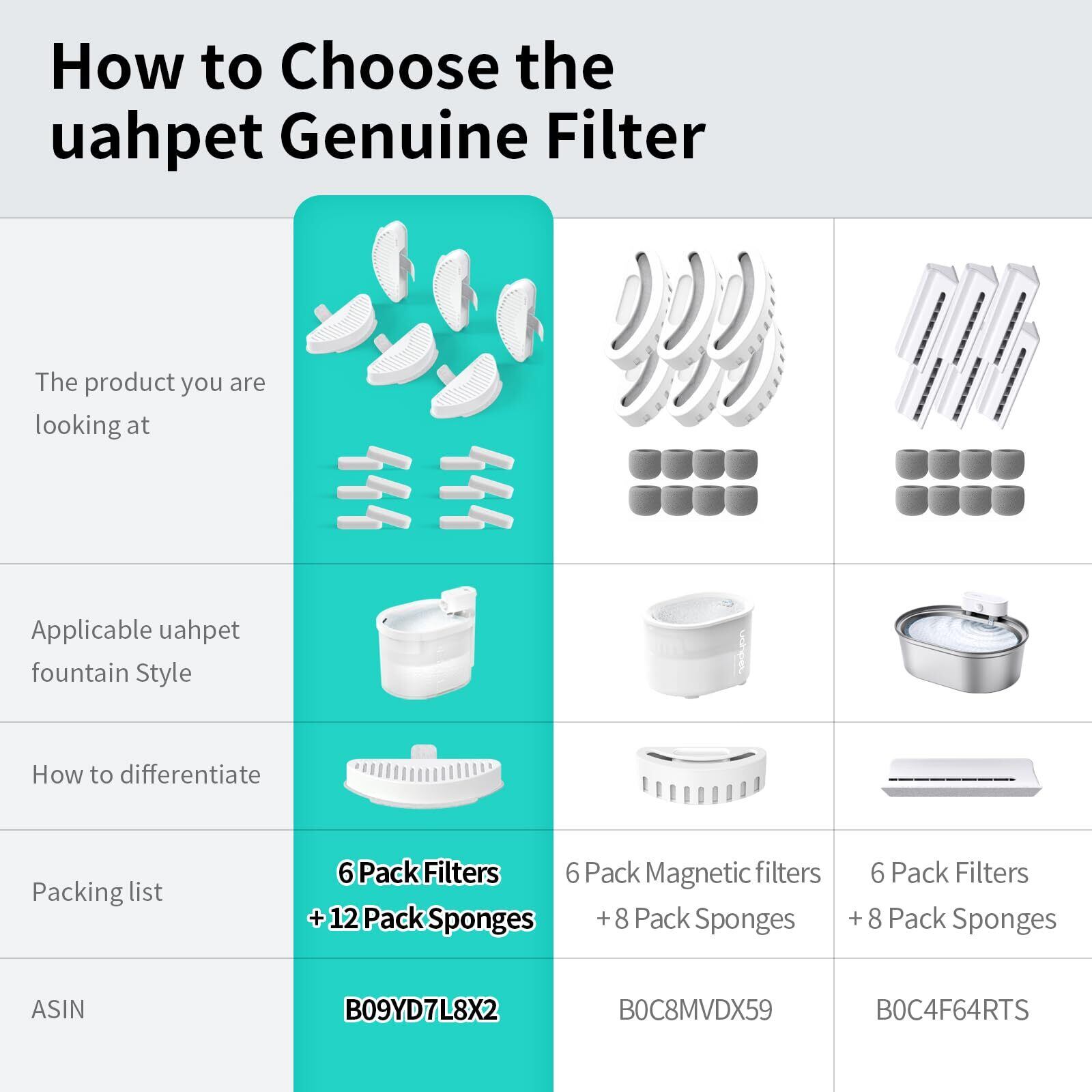 uahpet 交換用フィルター 6個入 猫用 犬用 水飲み器 浄水 軟水化フィルター 活性炭 イオン交換樹脂 ペット 水飲み 自動給水器 UYSJ02専用 交換用スポンジ12個付き