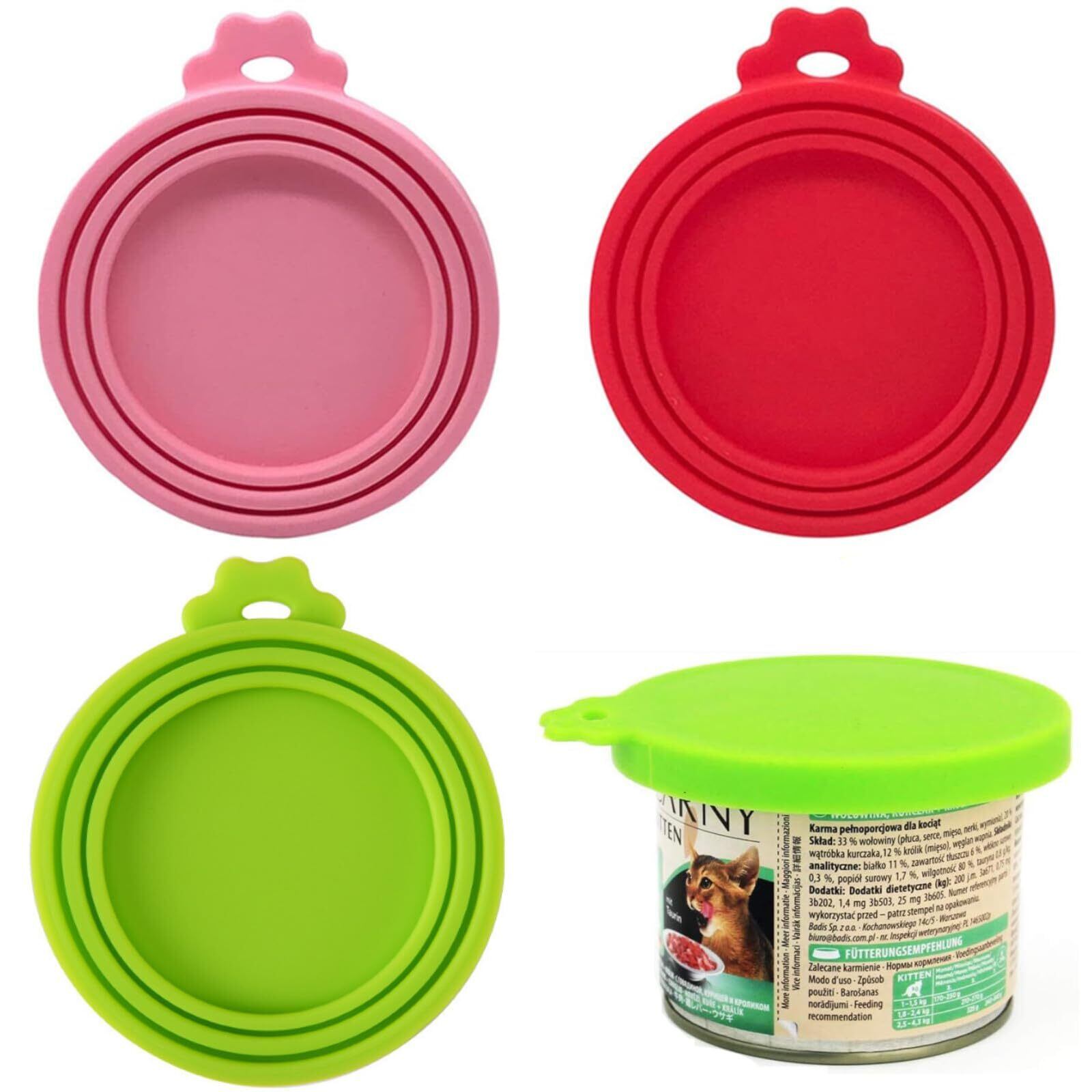 ペット用 缶詰の蓋 3個セット シリカゲル缶カバー 密封容器 猫缶フタ 犬缶フタ 保存用 密閉缶詰蓋 シリコンペット缶の蓋 3つのサイズに適用 (ピンク、レッド、グリーン)