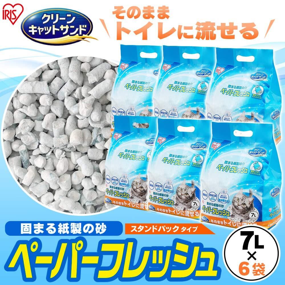 アイリスオーヤマ 猫砂 ペーパーフレッシュ トイレに流せる 固まる スタンドパック PFC-7LS (紙製) 7L×6袋 (ケース販売)
