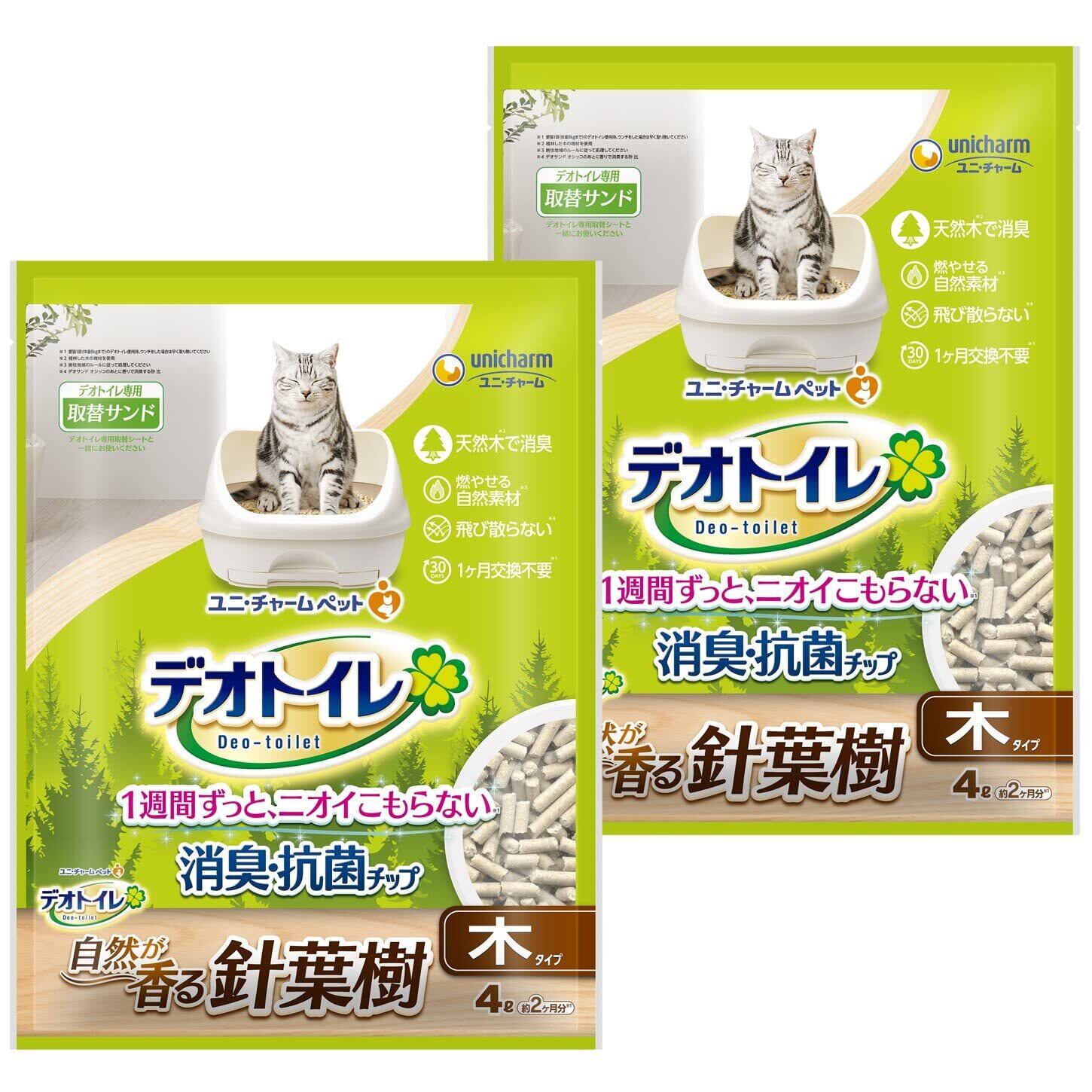 デオトイレ 針葉樹の消臭・抗菌チップ 8L(4L×2袋)[猫砂] システムトイレ 猫用【まとめ買い】