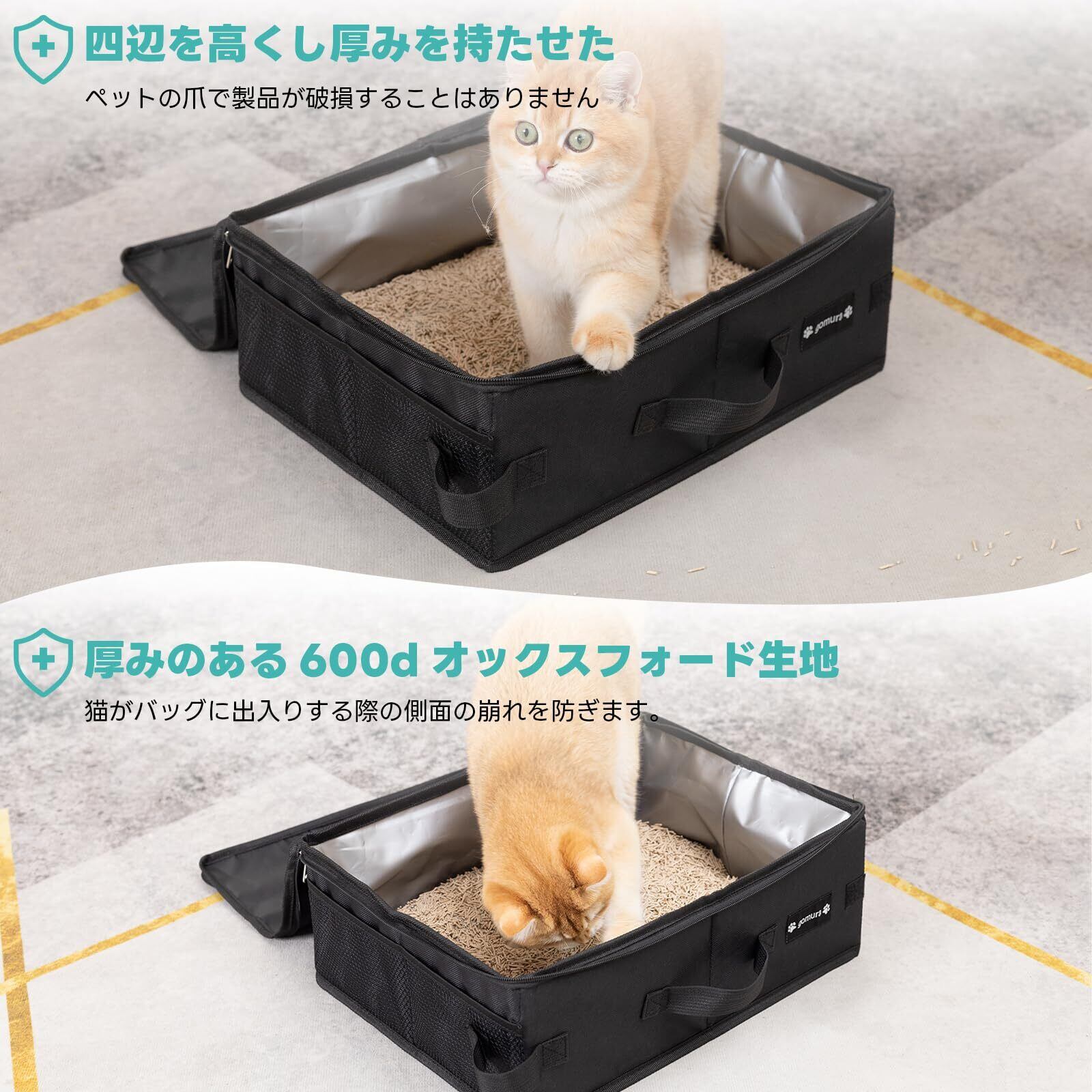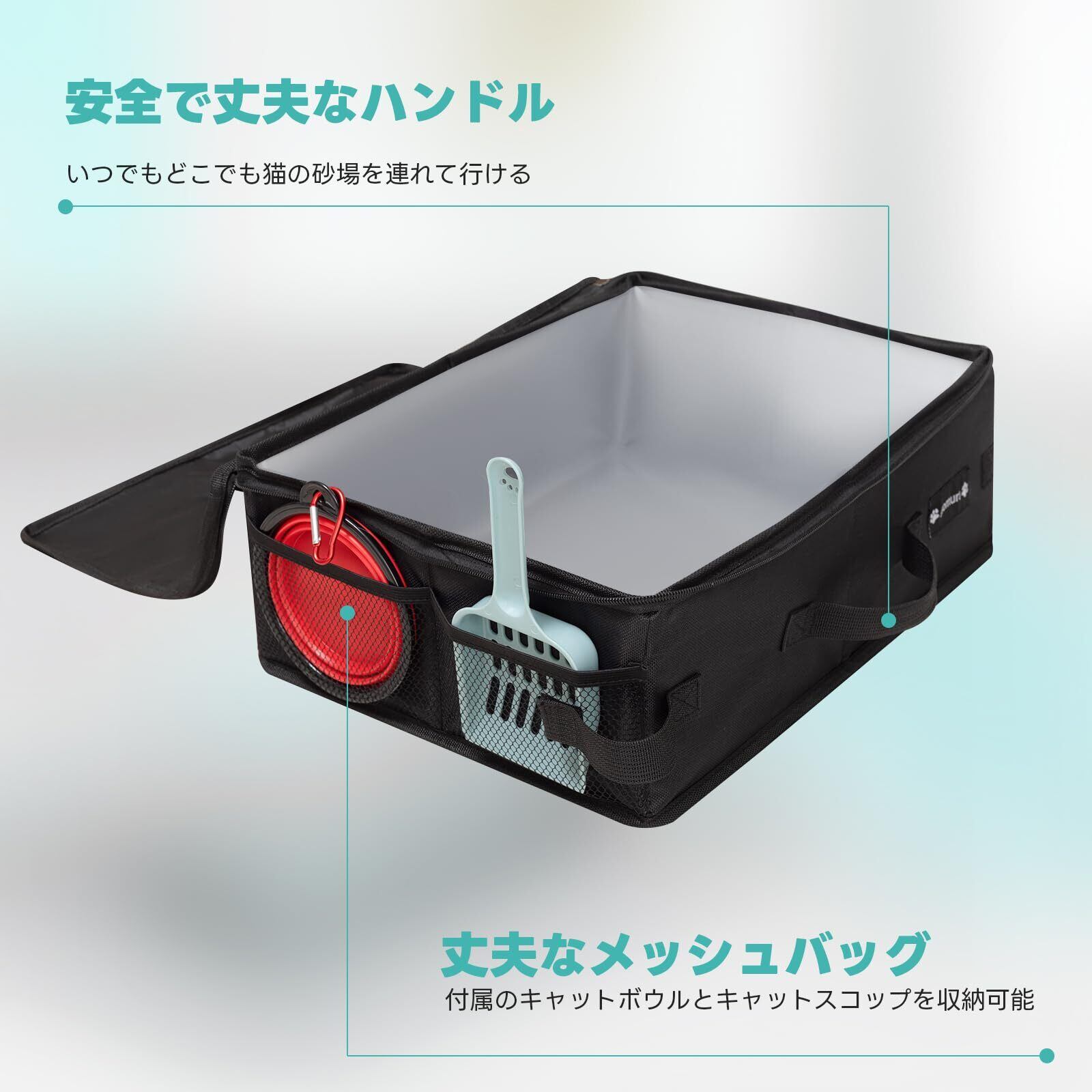 gomura 猫 トイレ 折りたたみ ポータブル ポータブルトイレ トイレスコップ付き 折りたたみ式ボウル付き 撥水 お手入れ簡単 旅行 お出かけ 防災 避難 地震対策 セカンドトイレ (ブラック, M(40*30*15))