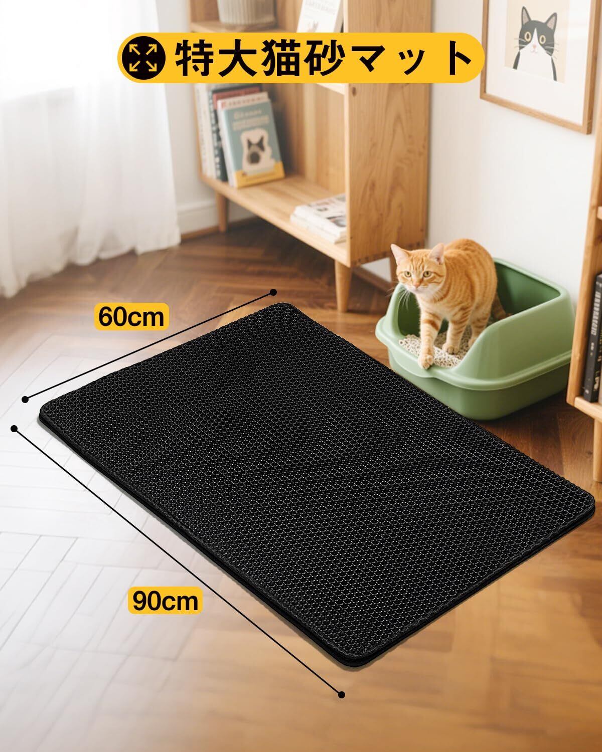 Ycozy 特大猫砂マット 90×60cm 猫トイレマット ダブルサイドベルクロ 4面開口デザイン 猫砂取りマット 飛び散り防止マット 二重EVA 猫マット ハニカムデザイン 滑り止め 防水や尿の浸透防止
