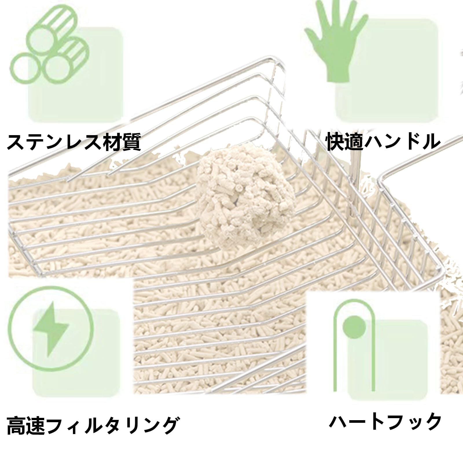 【猫砂掃除簡単ツール】ご愛用の猫砂スコップです!!この丈夫な猫トイレ用スコップセットは耐久性のあるノンスティックステンレス製で、ハンドルは滑り止め付きです。大きな猫のフンや砂をきれいに処理できます。大きなスコップは18x15x5cmで、猫砂の飛び散り防止は確保!