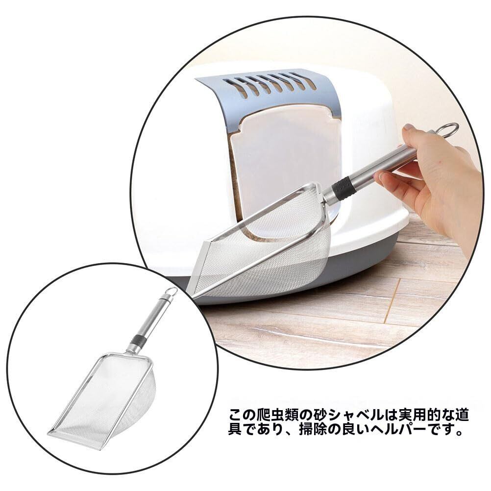 Milisten 猫砂スコップ 細かい砂 猫砂 スコップ ステンレス鋼 長い柄 金属 2mm*2mmメッシュ 砂すくいを拾う 猫砂トレイ用スコップ 猫砂シャベル 猫用スコップ 頑丈 砂取り用品 ネコトイレ用スコップ 合金製 丈夫 砂取り用品
