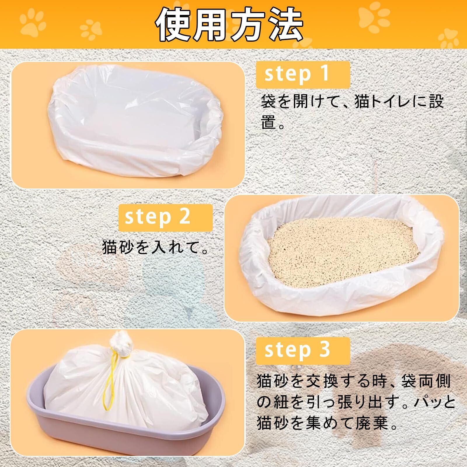 【手を汚さず簡単に猫砂を交換】LEZZYRUCK 猫トイレ袋は大容量で、より多くの排泄物を保持できるため、交換する回数が減り、時間とエネルギーを節約できます。両側の紐を引っ張って結ぶだけで猫砂を持ち上げ、手を汚さずに一気に捨てられます。巾着袋タイプなので大量の猫砂も簡単に回収・処分でき、使い捨てなので衛生的です。