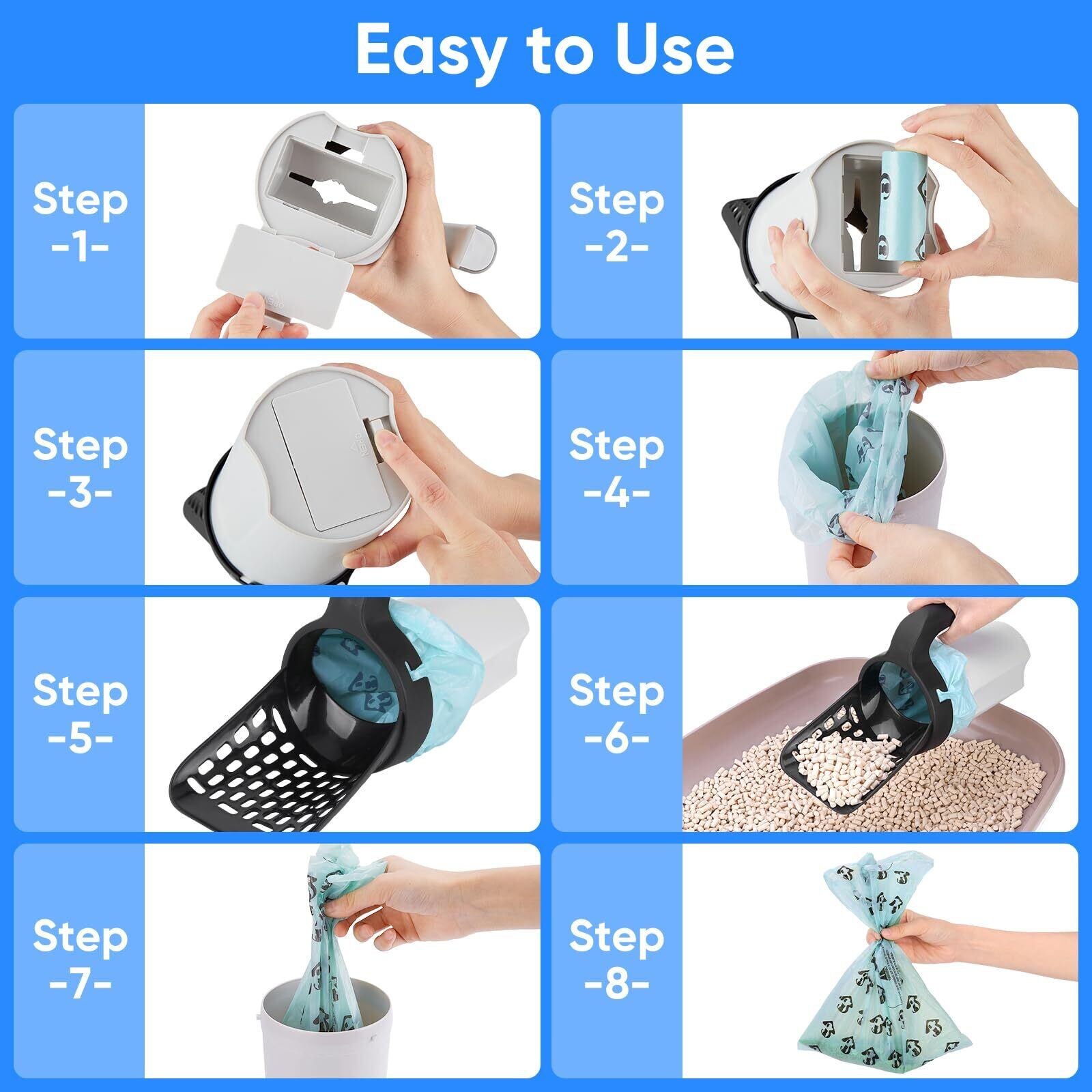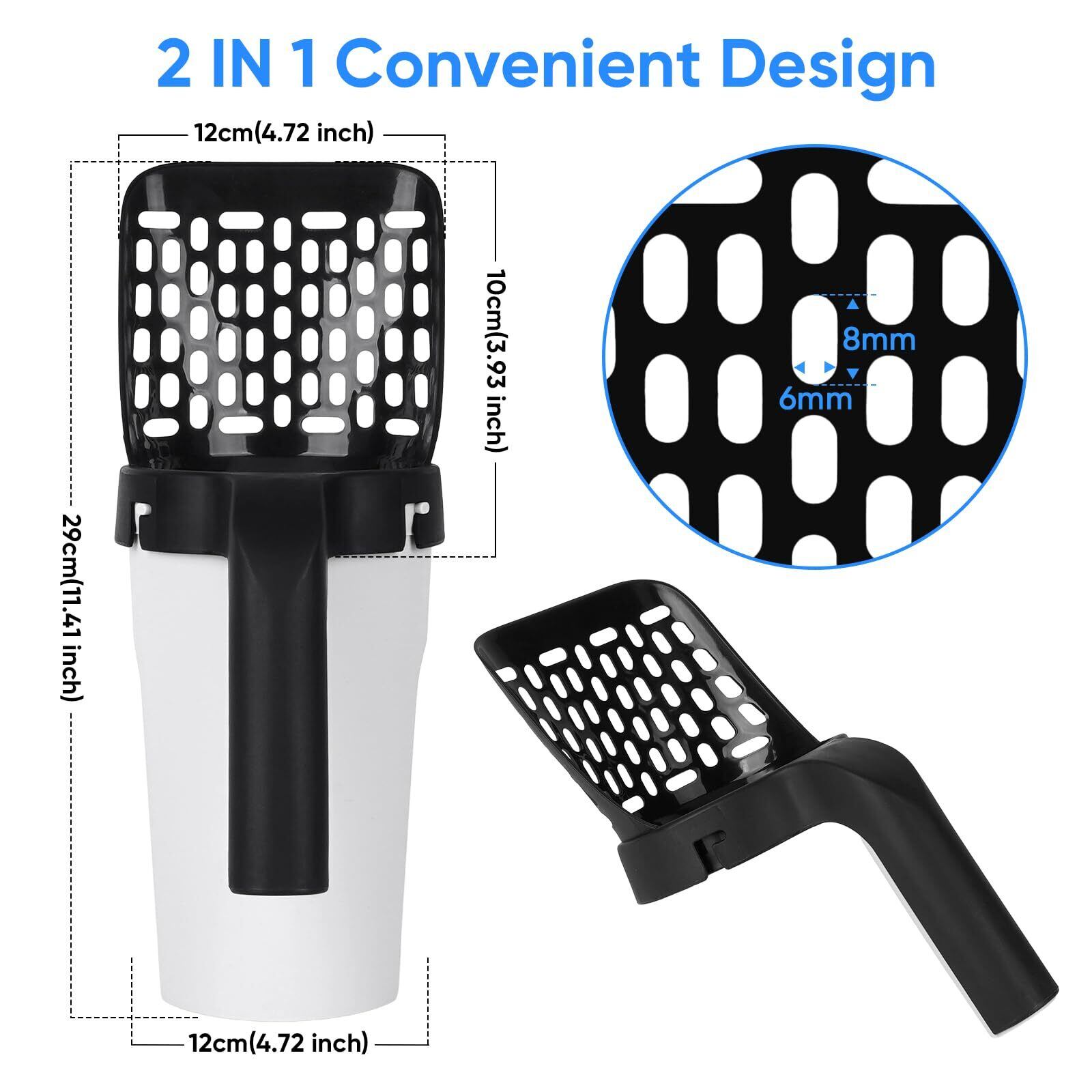 [ホルダー付き2 IN 1スコップ]猫砂スコップ+猫砂入れ+ゴミ袋の組み合わせユニークなデザインです。掃除と回収が一体となり、シンプルなスコップだけでなく、追加の袋も付いて、片手でペットのウンチを掃除でき、便利で毎日の掃除に適しています。