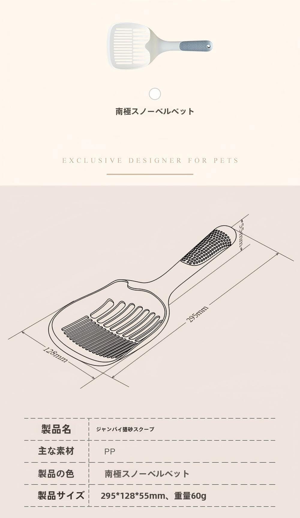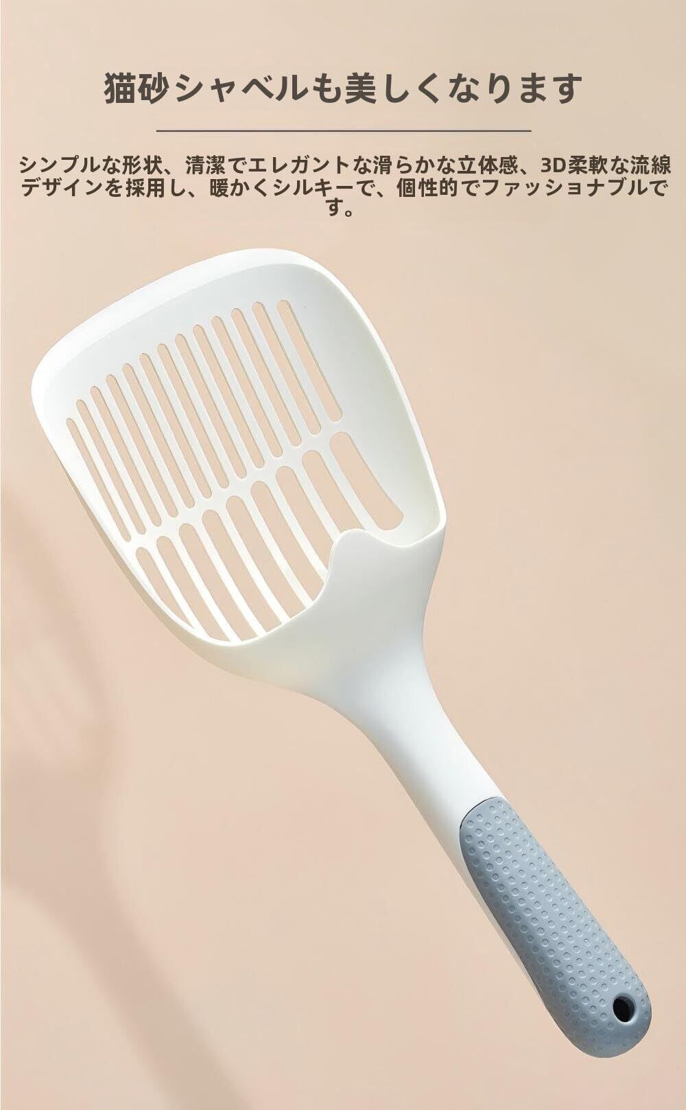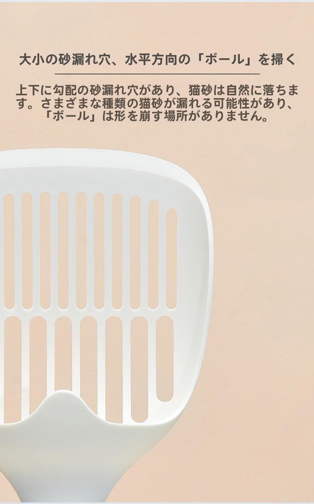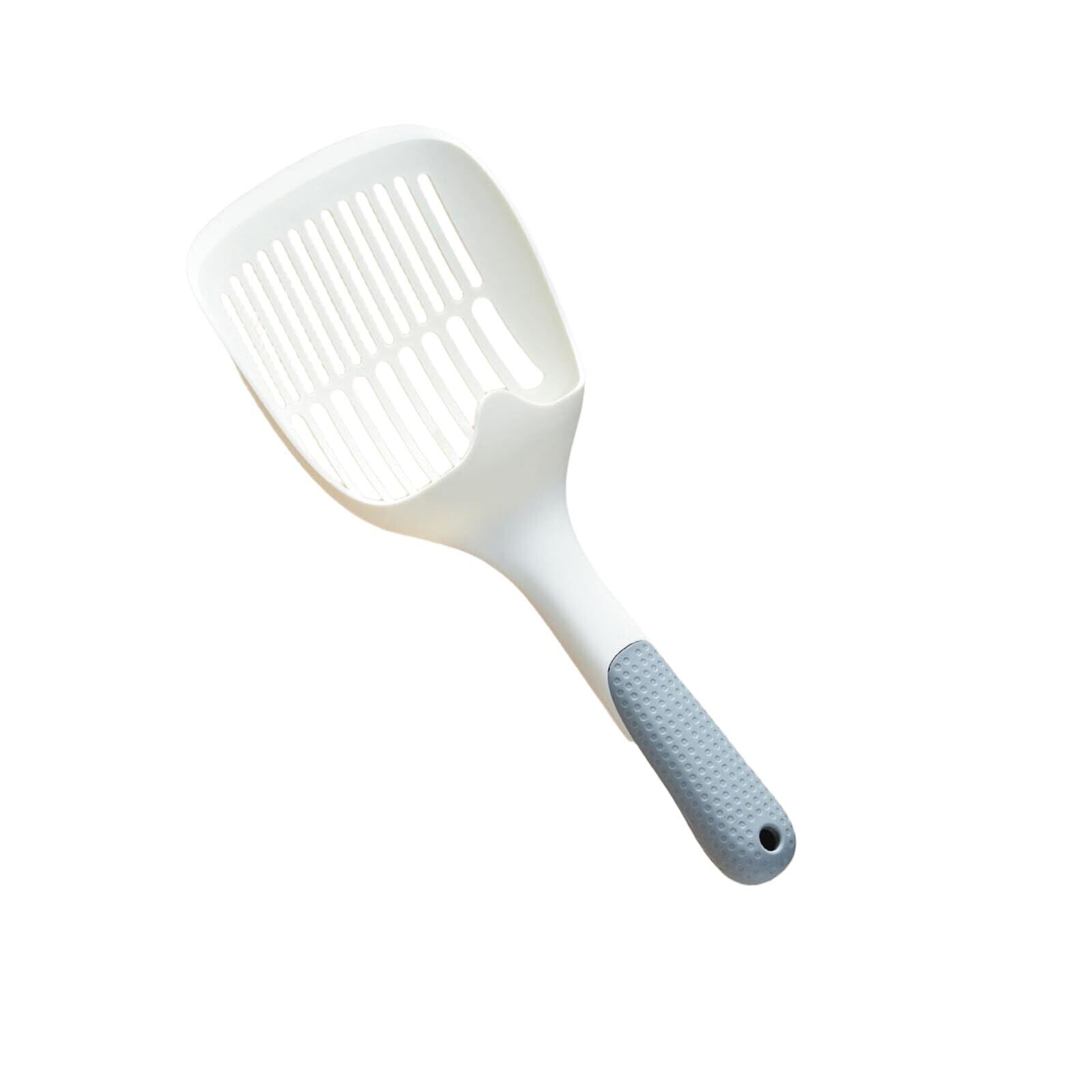 猫砂スコップ 大容量設計 PP製 3D曲線デザイン 29.5cm広角スクープ 段階式穴ふるい 軽量60g(スノーホワイト/二重フック付き)