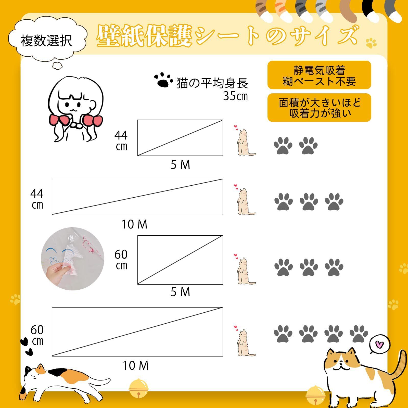 【新春セール】HEDONLEE 猫 壁紙保護シート60cm*10m 静電気吸着 壁紙シール はがせる 透明シート 爪研ぎ防止 ペット のり要らない キッチン 家具/柱/机/壁の傷や汚れを防ぐ 貼るだけ簡単 落書き防止 賃貸OK (60cm*10m) | wakuwakuland
