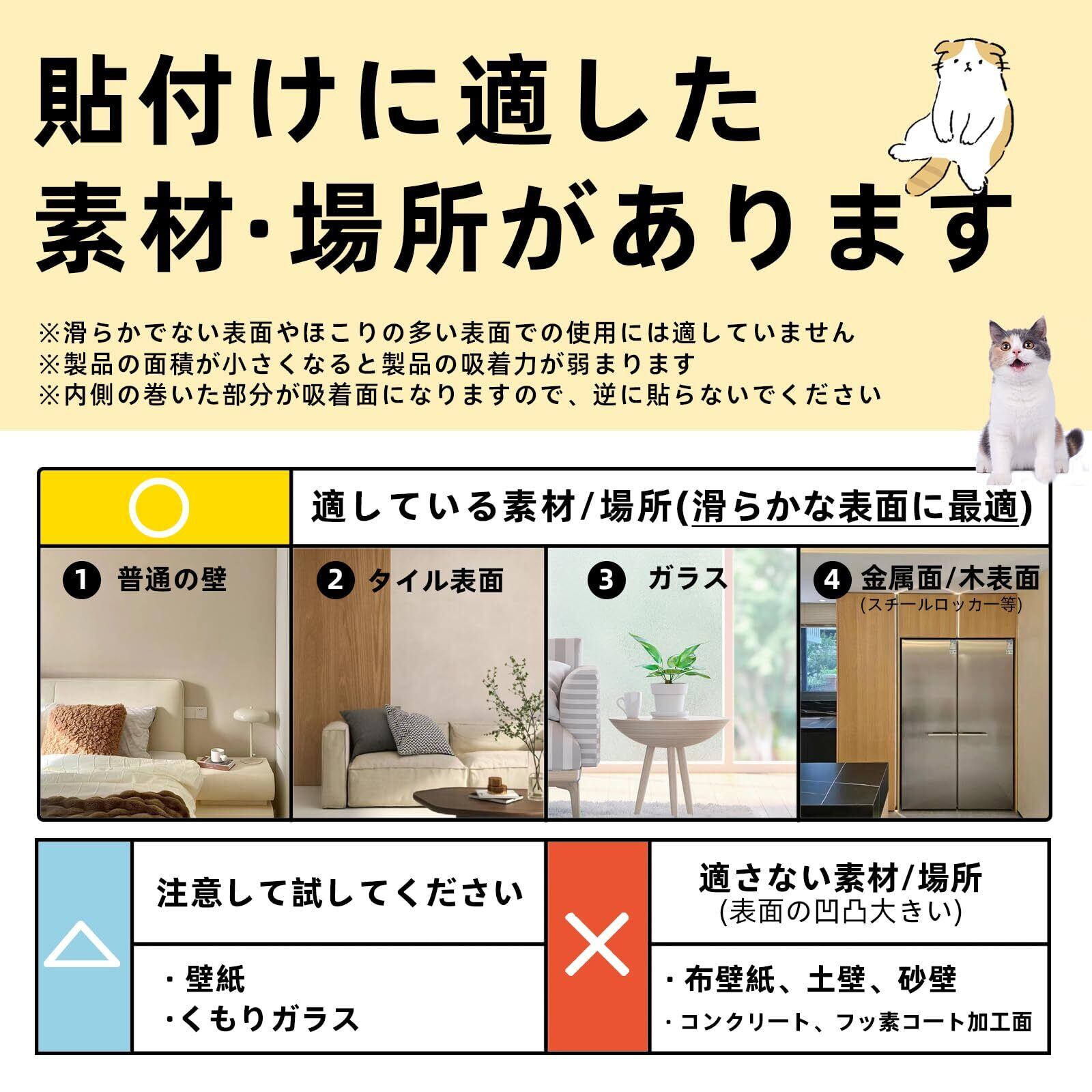 商品の推奨用途 1.使用前に、壁やその他の表面にほこりや不純物がないことを確認してください。2. 内側が貼り付け面になります、壁紙は自動的に表面に貼り付くので、気泡を絞り出すだけです。