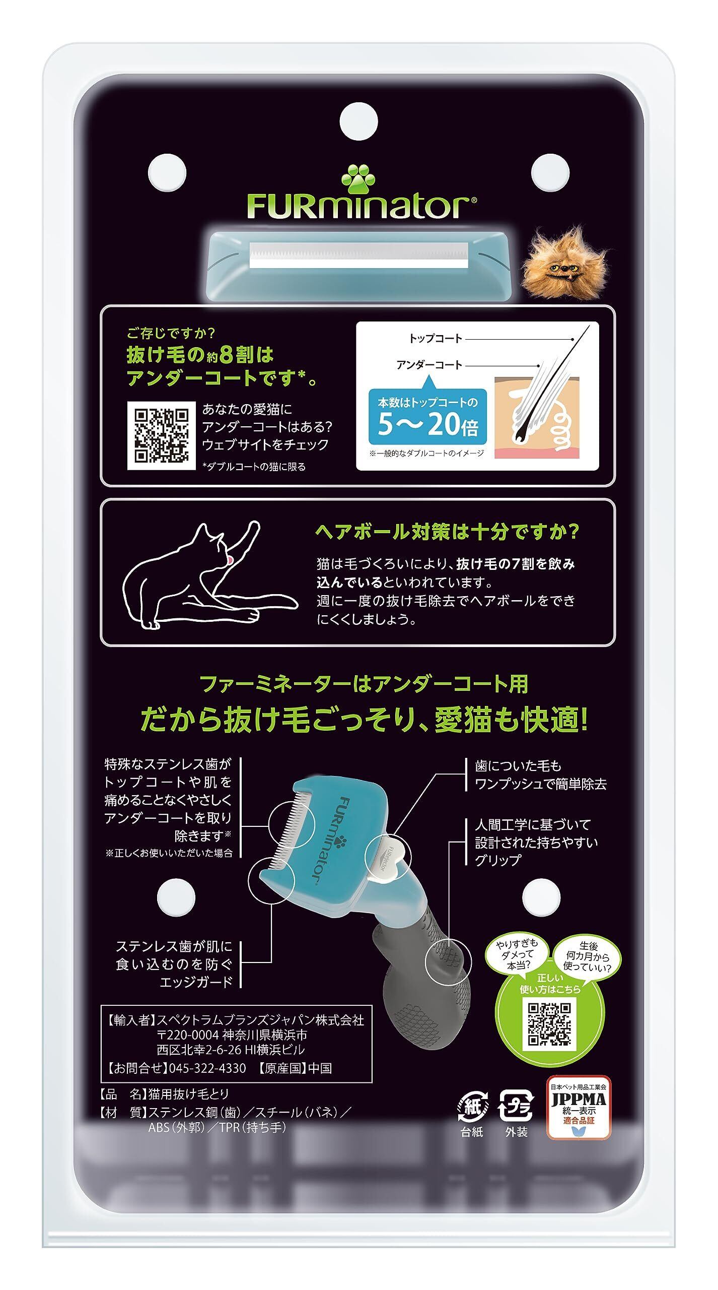 ファーミネーター 小型猫 S 短毛種用 ペット ブラシ 獣医師監修 ヘアボール(毛球症)対策 肌に優しくアンダーコート除去 ボタンを押して抜け毛が簡単に取れる グルーミングブラシ スキンケア 熱中症対策