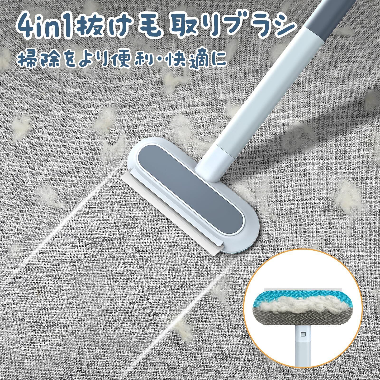 猫 毛取り クリーナー Pawaboo 猫の毛取り 猫毛取りブラシ 抜け毛 ワイパー 毛玉取り 猫用 抜け毛取り 4in1 犬用 抜け毛取り用品 ペット毛対応 猫毛髪掃除 毛玉除去ブラシ ペット用 多機能 繰り返し使用可乾湿両用絨毯/衣類/カーペット/布団/シート/ソファー適用 長さ45cm
