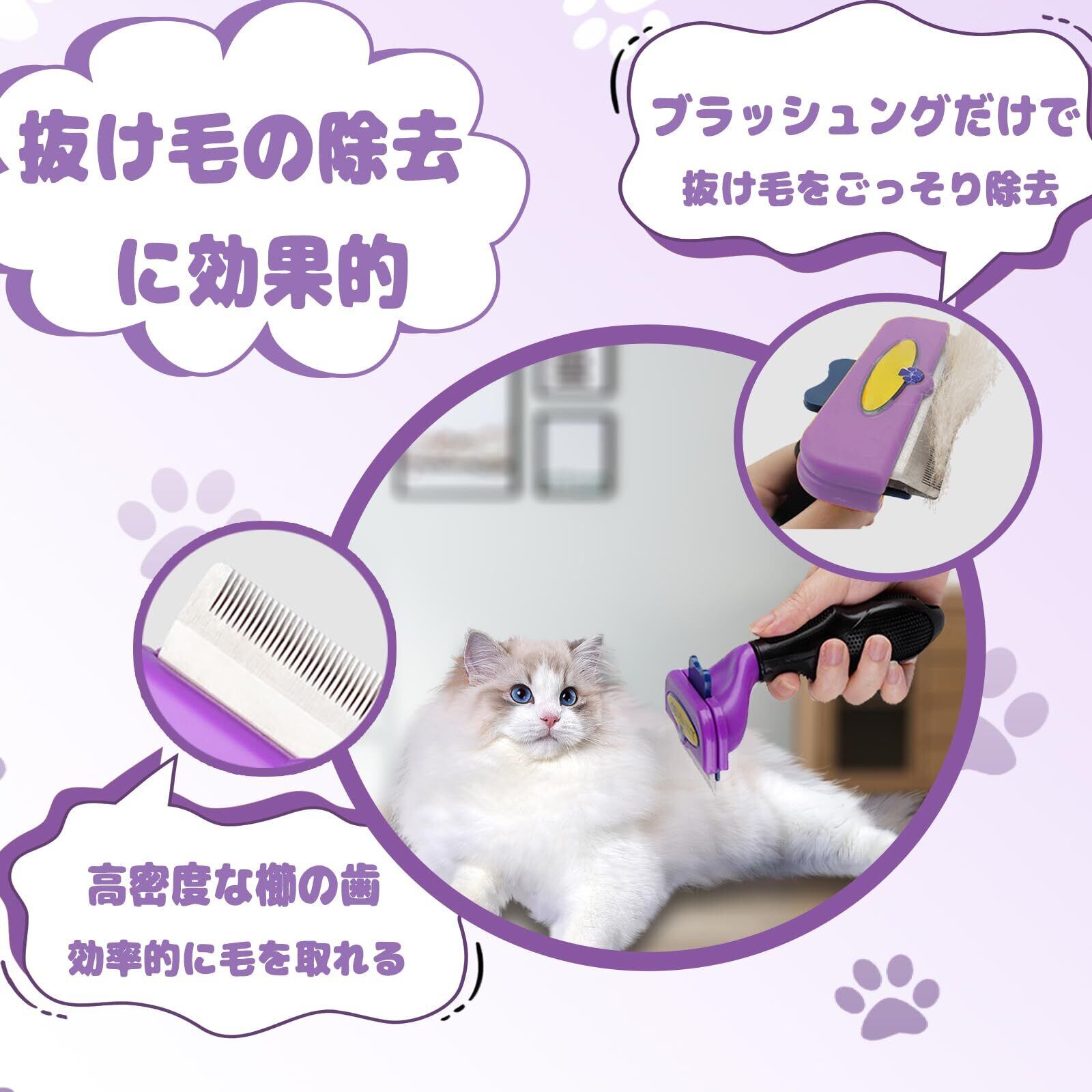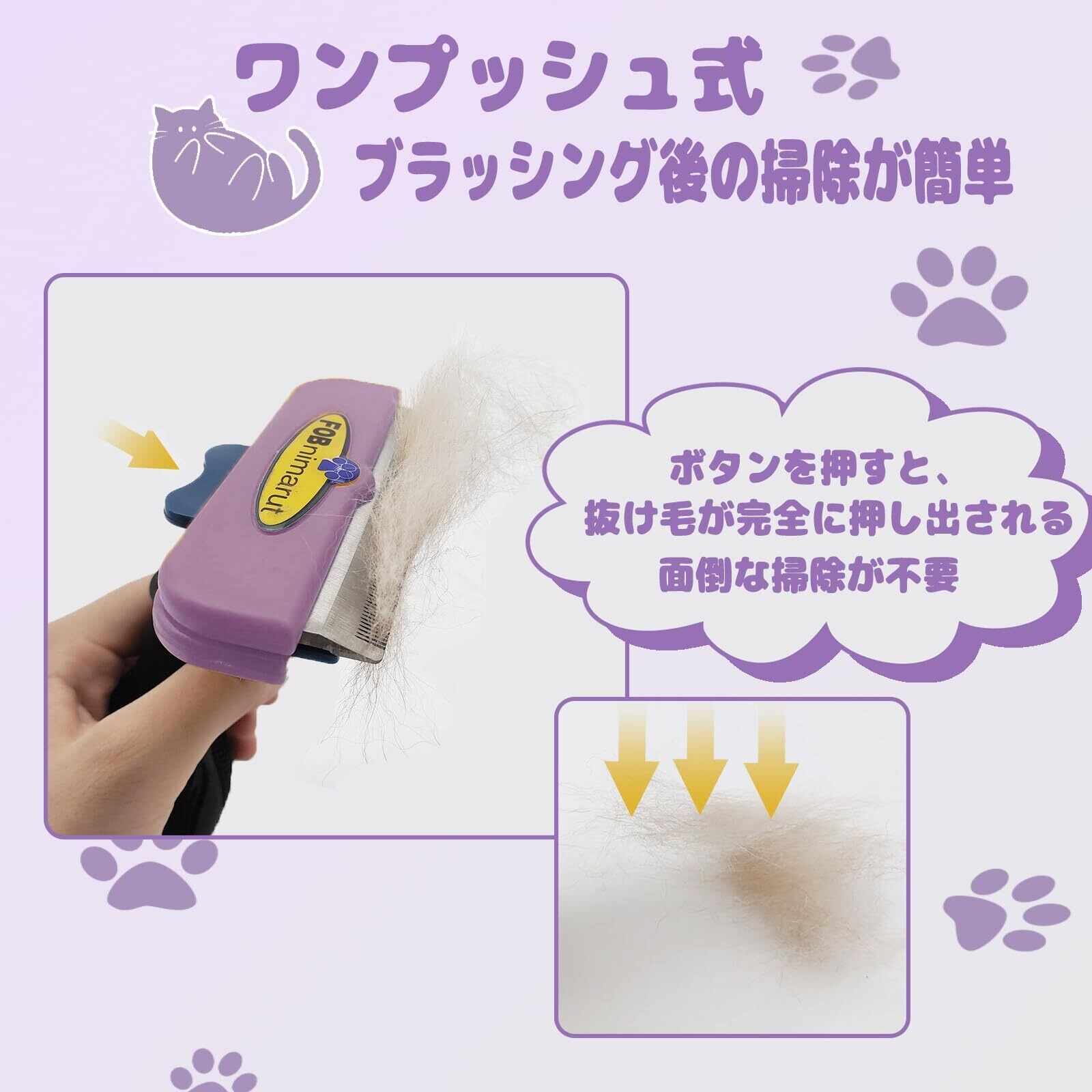 商品特長 高密度なステンレス歯を配置して、アンダーコートをごっそり取れます。ワンプッシュ式ボタンでお手入れが簡単です。