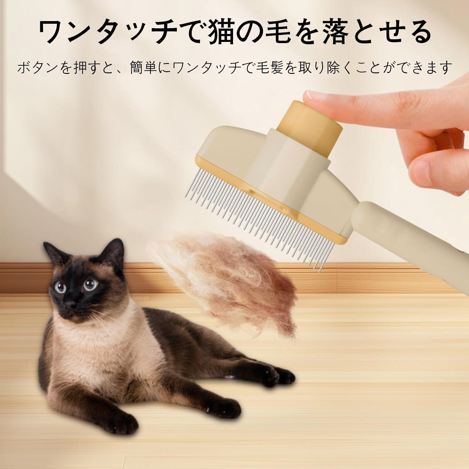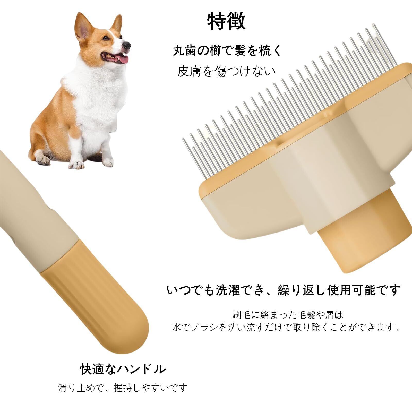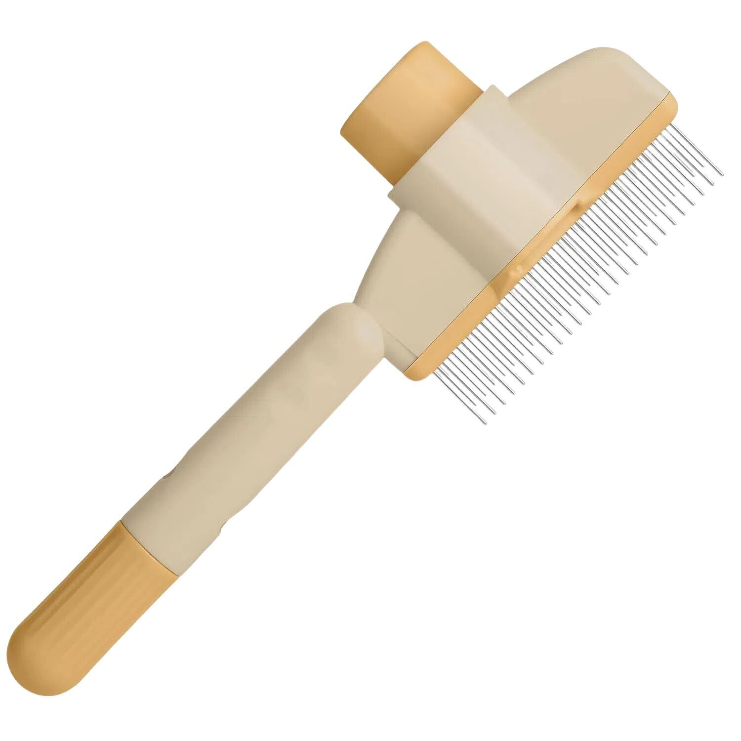 DICOCO 猫ブラシ 犬用ブラシ ペット ブラシ 「ワンプッシュ式」痛くない 犬 猫 毛取り簡単 収納便利 長毛&短毛種兼用くし 猫・犬適用 (イエロー)
