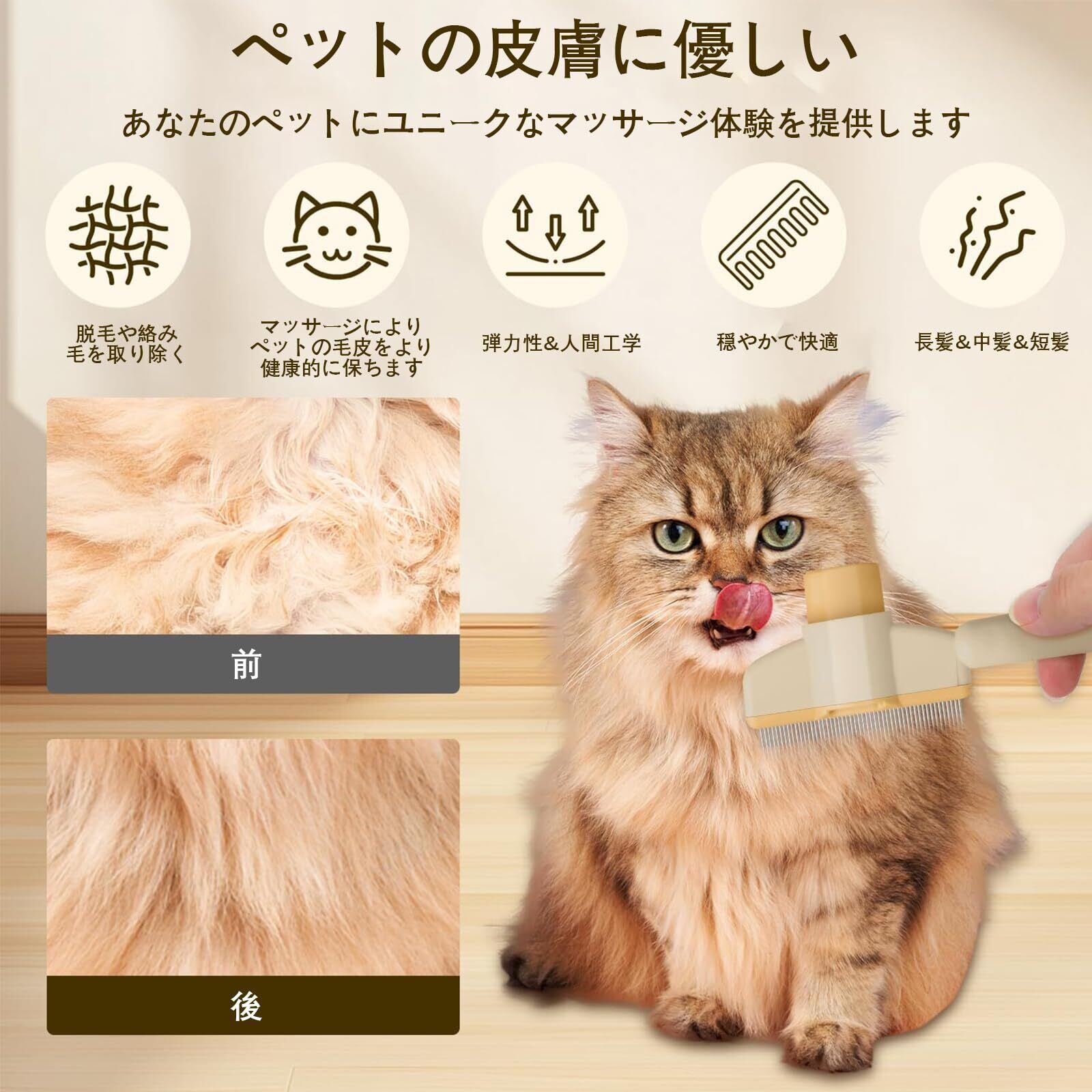 【高品質のブラシ】この革新的なブラシは二重機能の刷毛を備えており、ペットの毛からばらばらな毛を効果的に取り除くことができます。柔らかくて丈夫な刷毛は、ペットの皮膚とより良く接触し、血液循環を促進することができます。