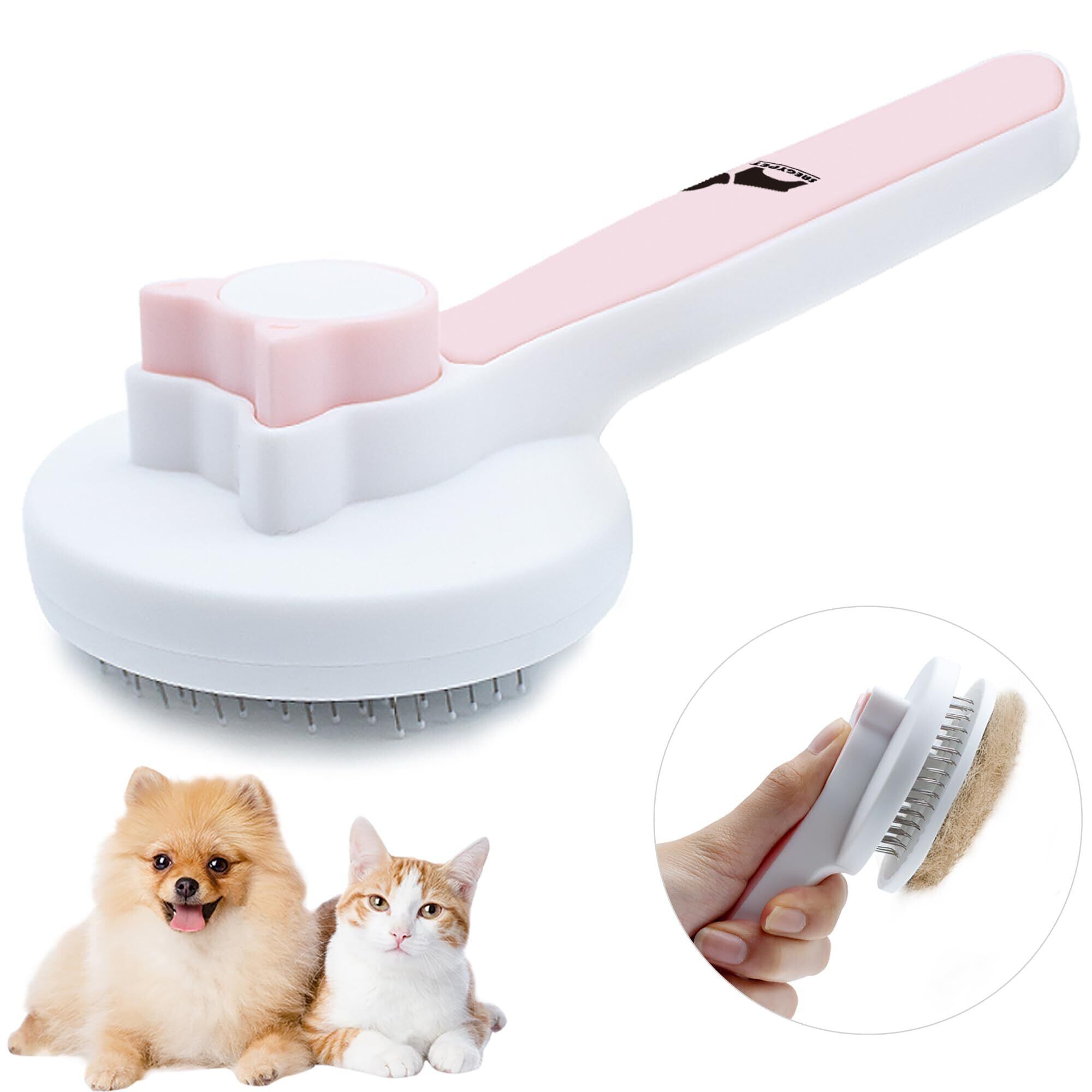 猫 ブラシ 「SAEGYPET」ペット用ブラシ 猫ブラシよく取れる 犬用ブラシ スリッカーブラシ ボタンを押してワンプッシュ式 抜け毛除去簡単 ペットグルーミングブラシ 長毛・短毛 猫・犬兼用 (ピンク)
