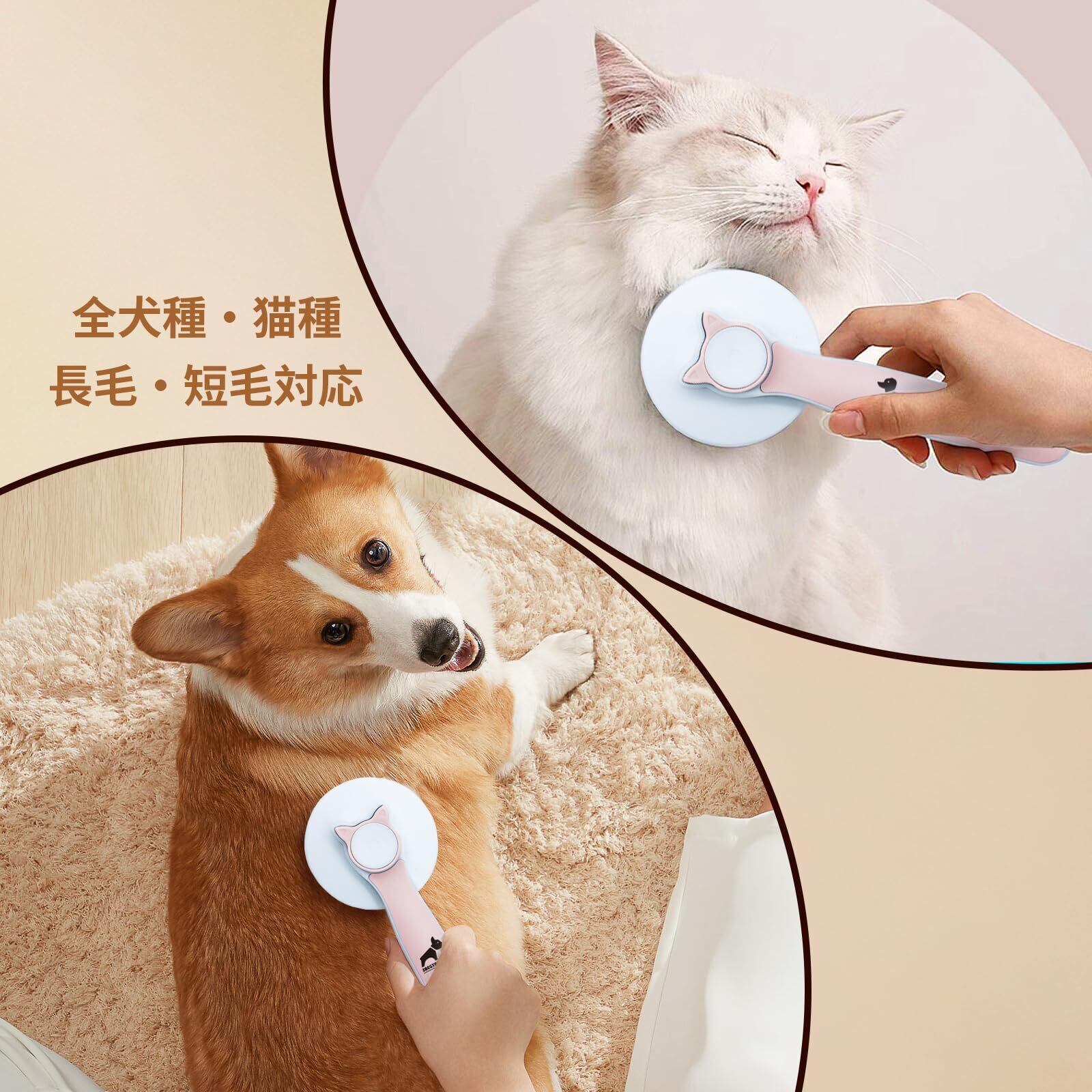 【ワンボタンお手入れ】猫ブラシのリリースボタンを押すだけで抜け毛を除去。犬ブラシは丸洗い可能で清潔を維持。