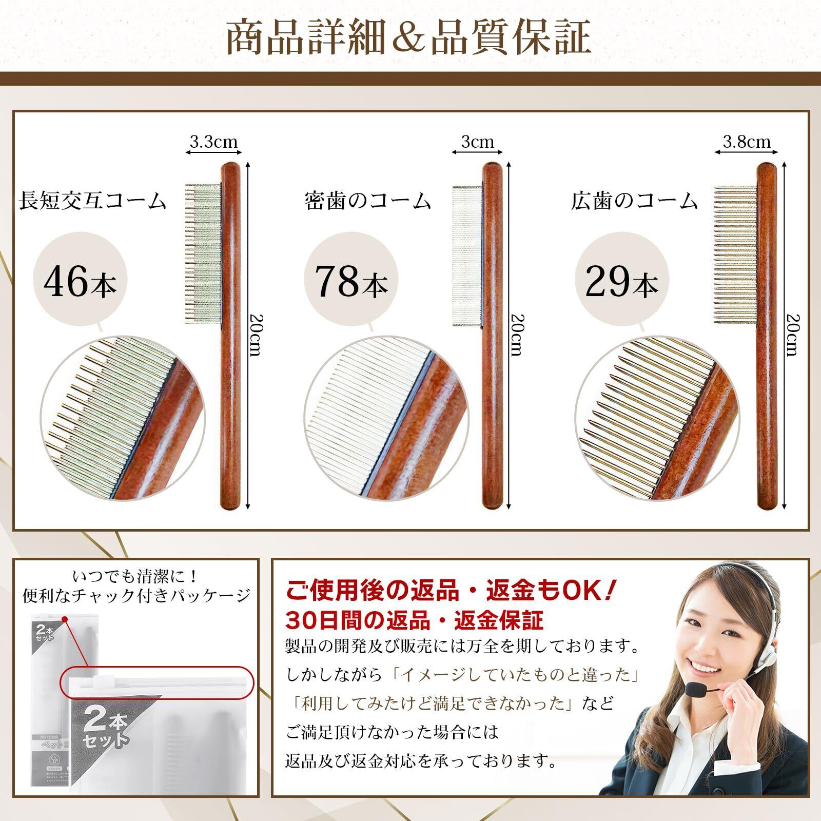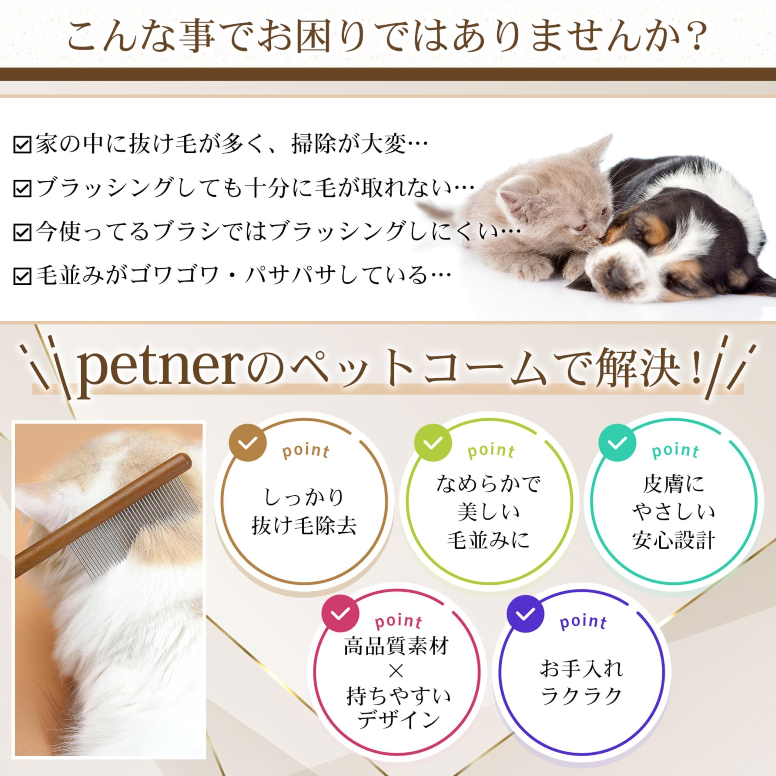 【Petner】ペット用コーム 短毛種用【獣医師監修】ペットブラシ ペットくし ブラッシング コーム 2本セット 犬・猫用品 (長毛種・短毛種別) (②)