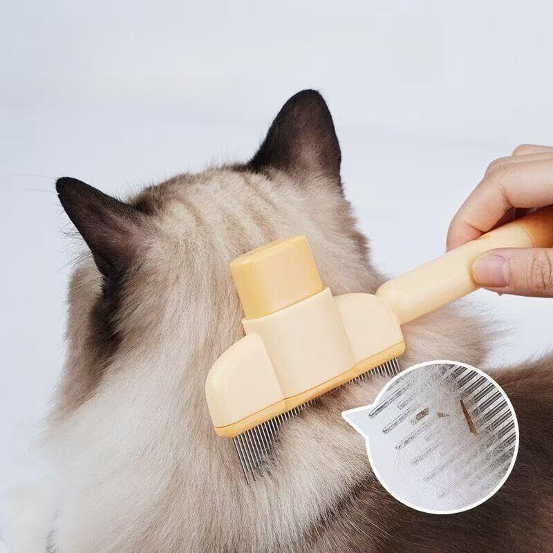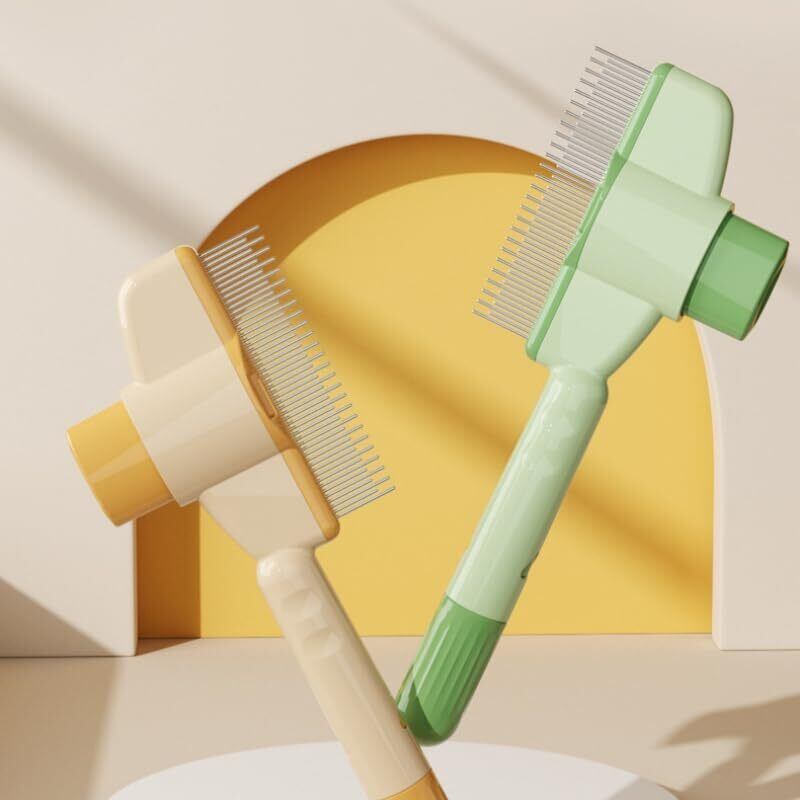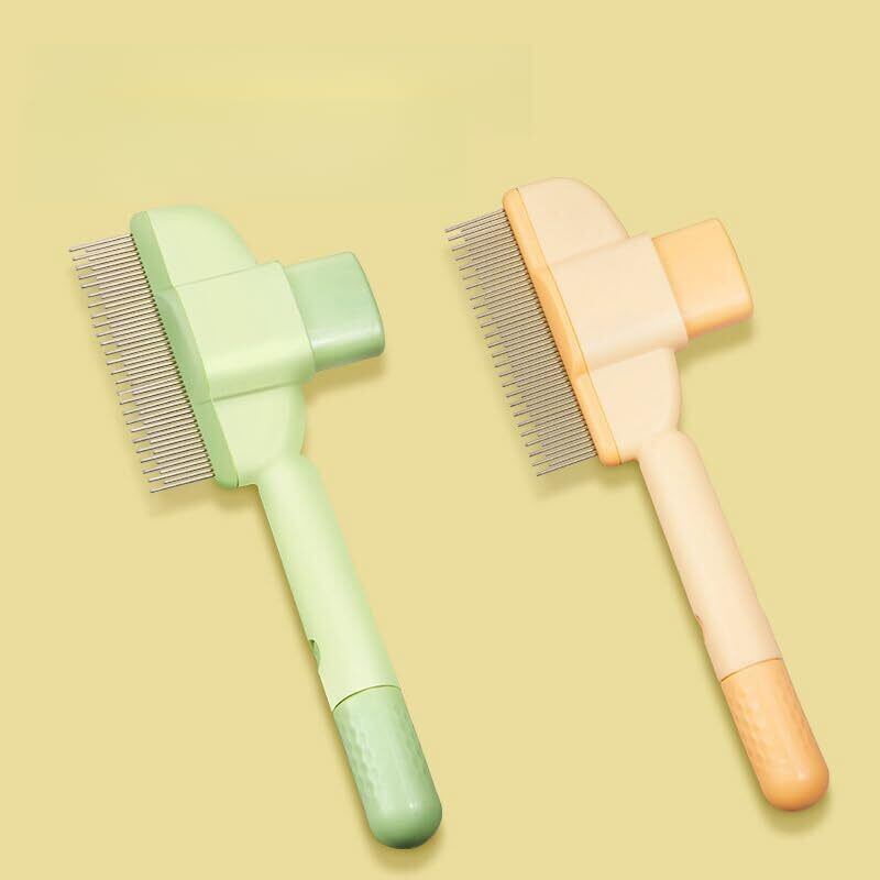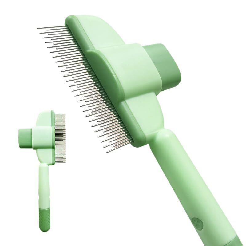 Ftliugteer(フライユティア) ペット用ブラシ ペット用くし ワンプッシュ式 ペット コーム ノミ取り櫛 猫 犬 用品 短毛 長毛 種向け トリミング用品 (グリーン)