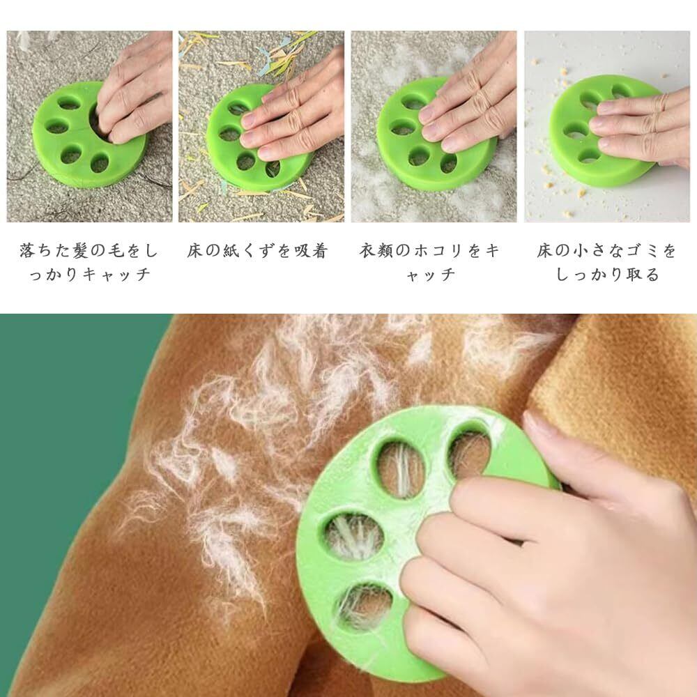 【セット内容】猫の毛髪除去ツール4個セット(オレンジ2個、グリーン2個)。 サイズ:直径約70mm、厚み約6mm。