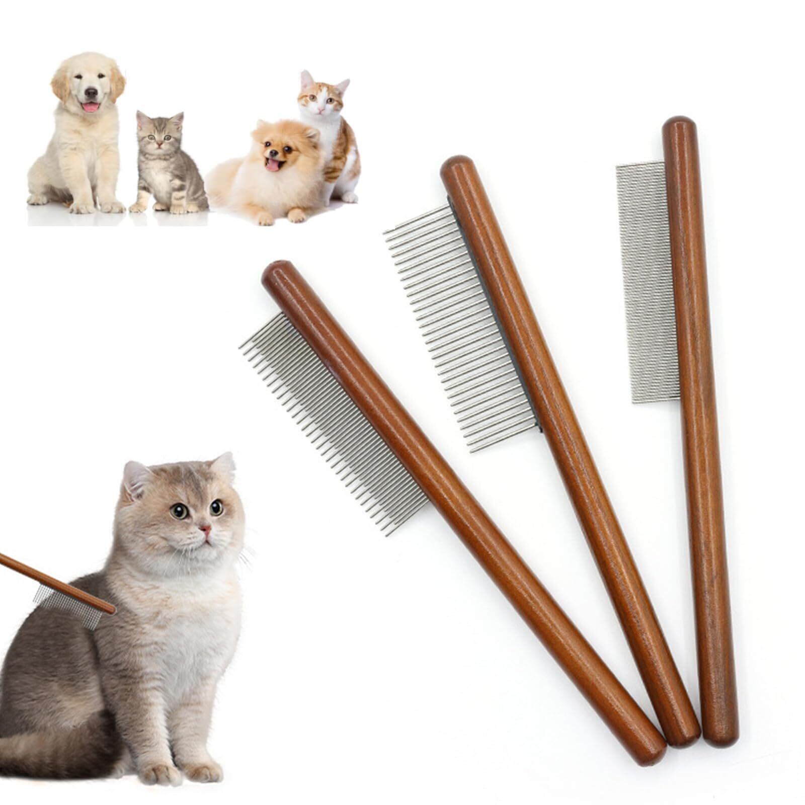 【2022最新】ペットブラシ ペットの櫛 3点セット ペット コーム ノミ取り櫛 ペット美容ブラシ 蚤取りコーム 脱毛コーム 猫用 櫛 ペット用くし 猫 毛取り ペットの毛取り 猫 犬 トリミング 毛並みを整える 抜け毛取り 蚤取り 猫 犬 ウサギ 木製ハンドルブラシ 静電防止 犬猫用櫛 トリミング用品 | wakuwakuland