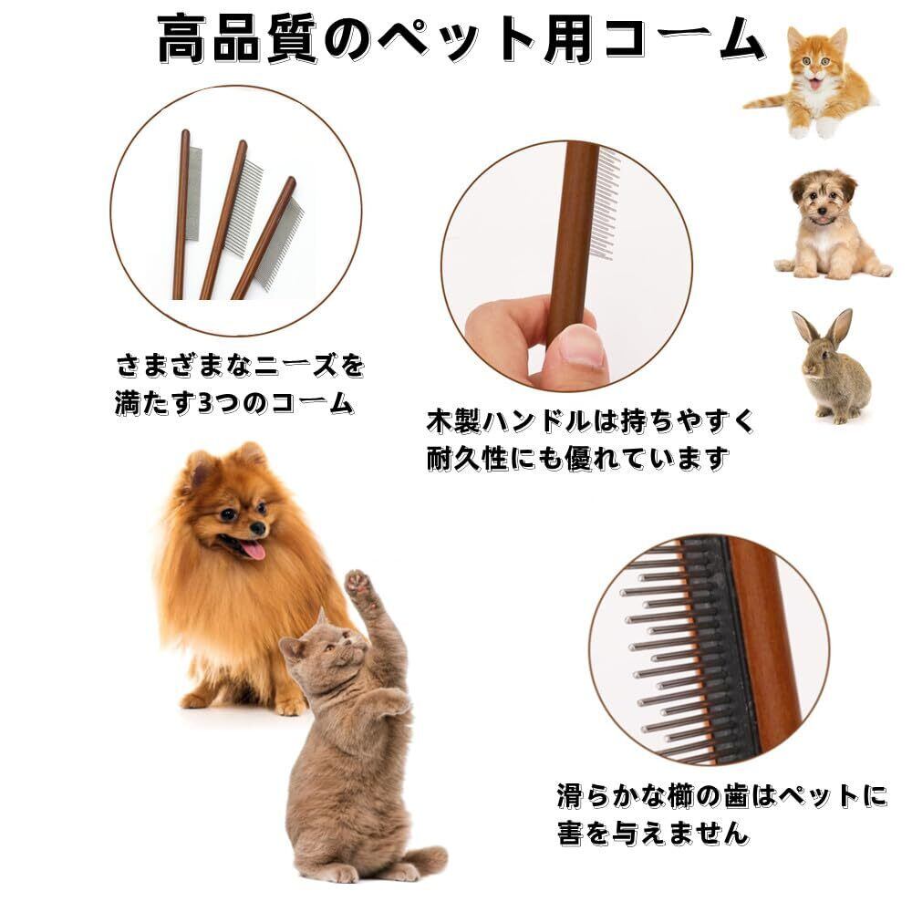 ペットブラシ ペットの櫛 3点セット ペット コーム ノミ取り櫛 ペット美容ブラシ 蚤取りコーム 脱毛コーム 猫用 櫛 ペット用くし 猫 毛取り ペットの毛取り 猫 犬 トリミング 毛並みを整える 抜け毛取り 蚤取り 猫 犬 ウサギ 木製ハンドルブラシ 静電防止 犬猫用櫛 トリミング用品