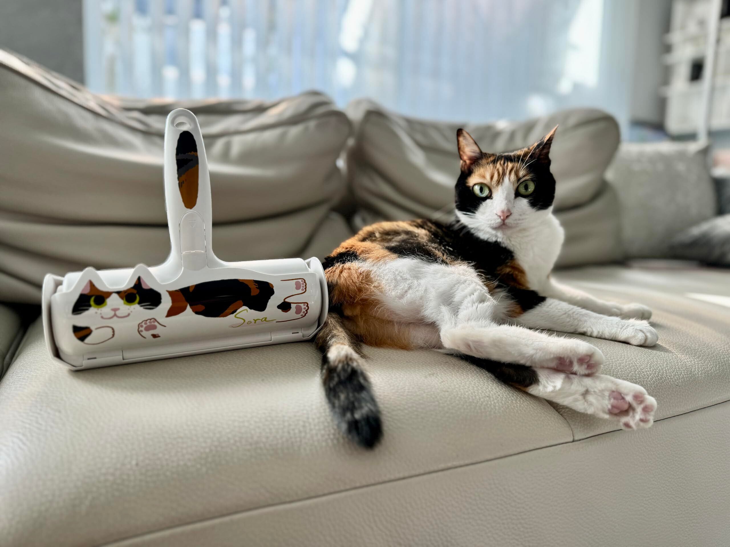 【特価セール】日本シール ぱくぱくローラー Sora 繰り返し使える抜け毛取りローラー エチケットブラシ カーペット ラグ ソファー 抜け毛掃除 猫 犬 ペット ほこり 髪の毛 コラボ 三毛猫 猫雑貨 響介 PacPaK N76SR | wakuwakuland
