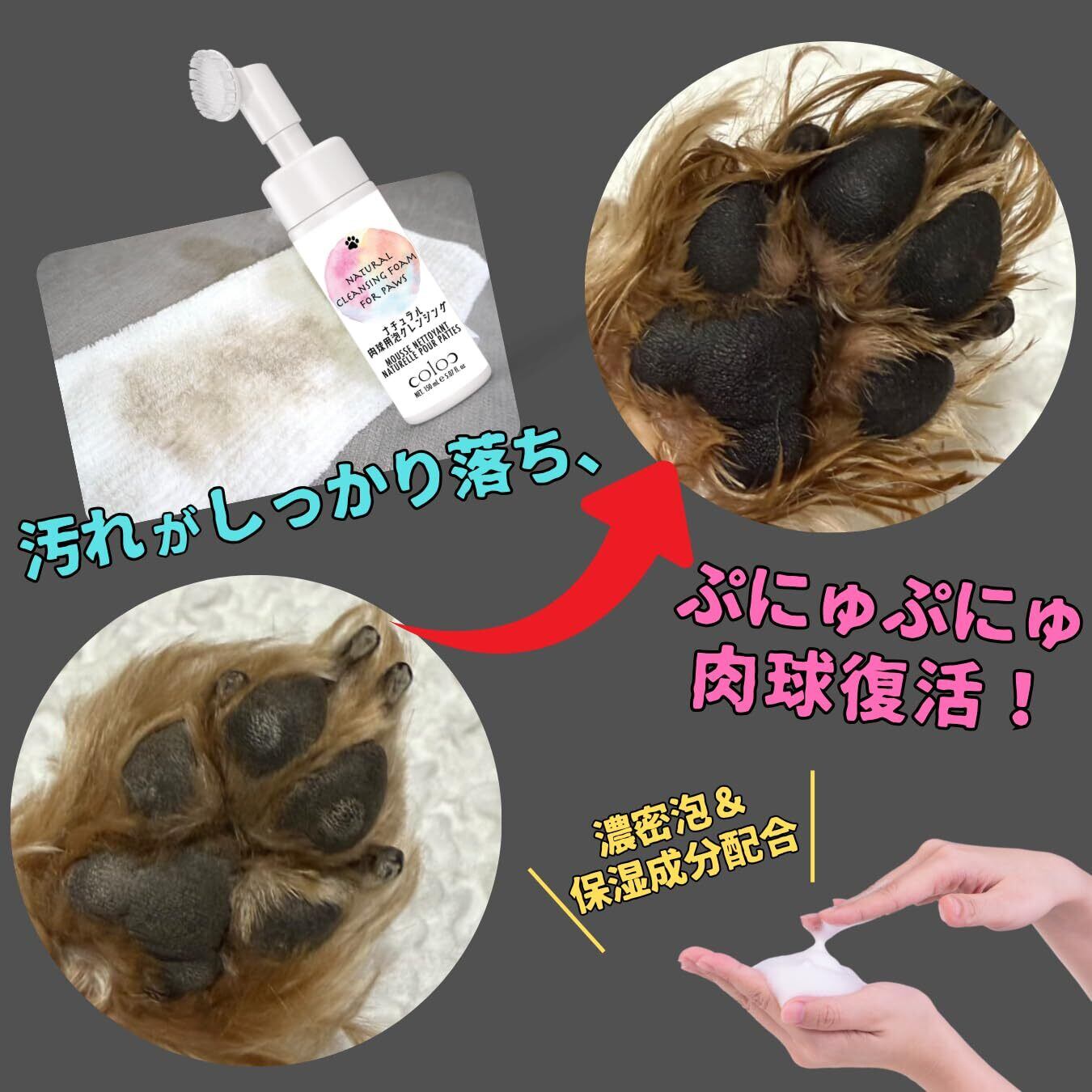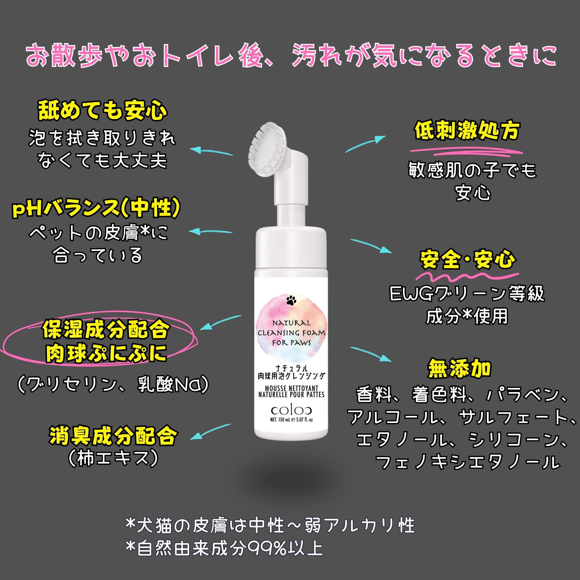 coloc 肉球用泡クレンジング ナチュラル 自然由来 無香料 無添加 低刺激 肉球クリーナー 洗い流し不要 ペットシャンプー 足洗い コロック 犬猫 150mL