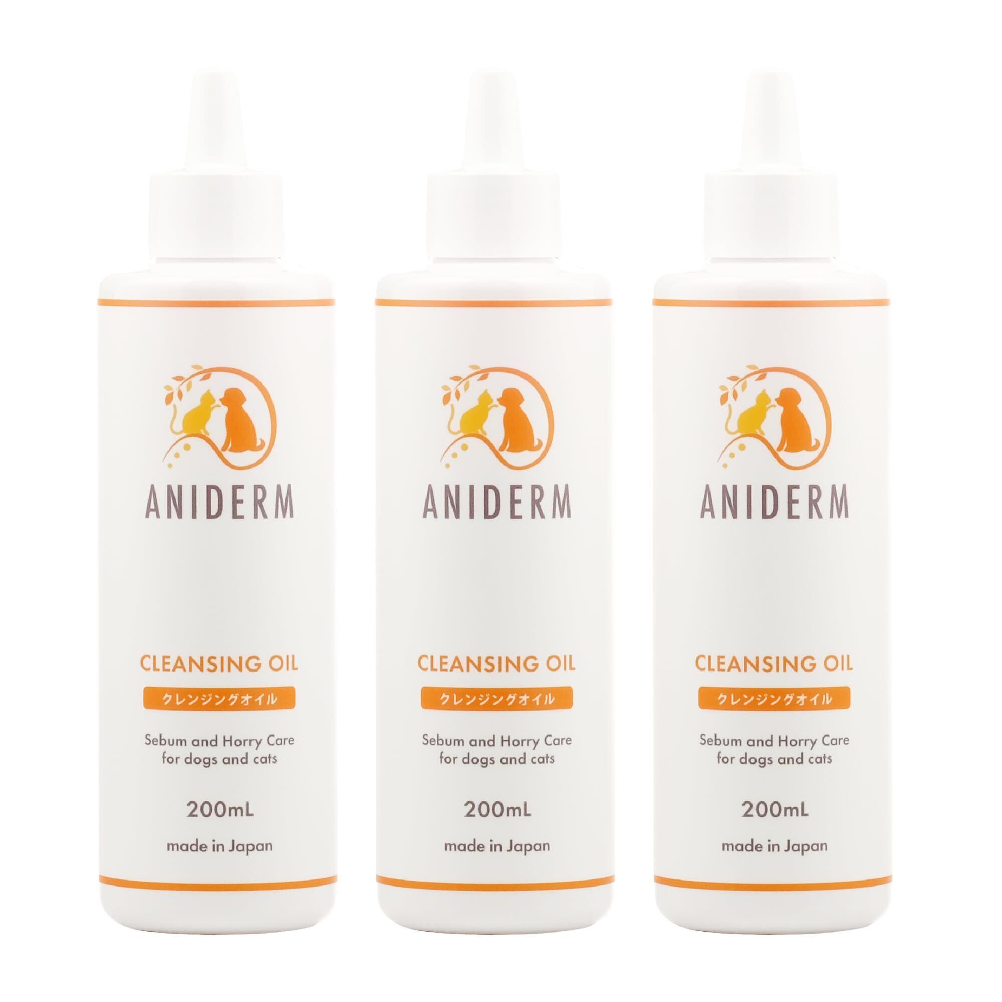 【この一手間でシャンプーが変わる!】 ANIDERM クレンジングオイル 犬 猫 肌 トラブル フケ 痒み 低刺激 脂漏 ベタつき アレルギー マラセチア 薬用 皮膚炎 国産 獣医師監修 200ml 3本セット (3本セット)