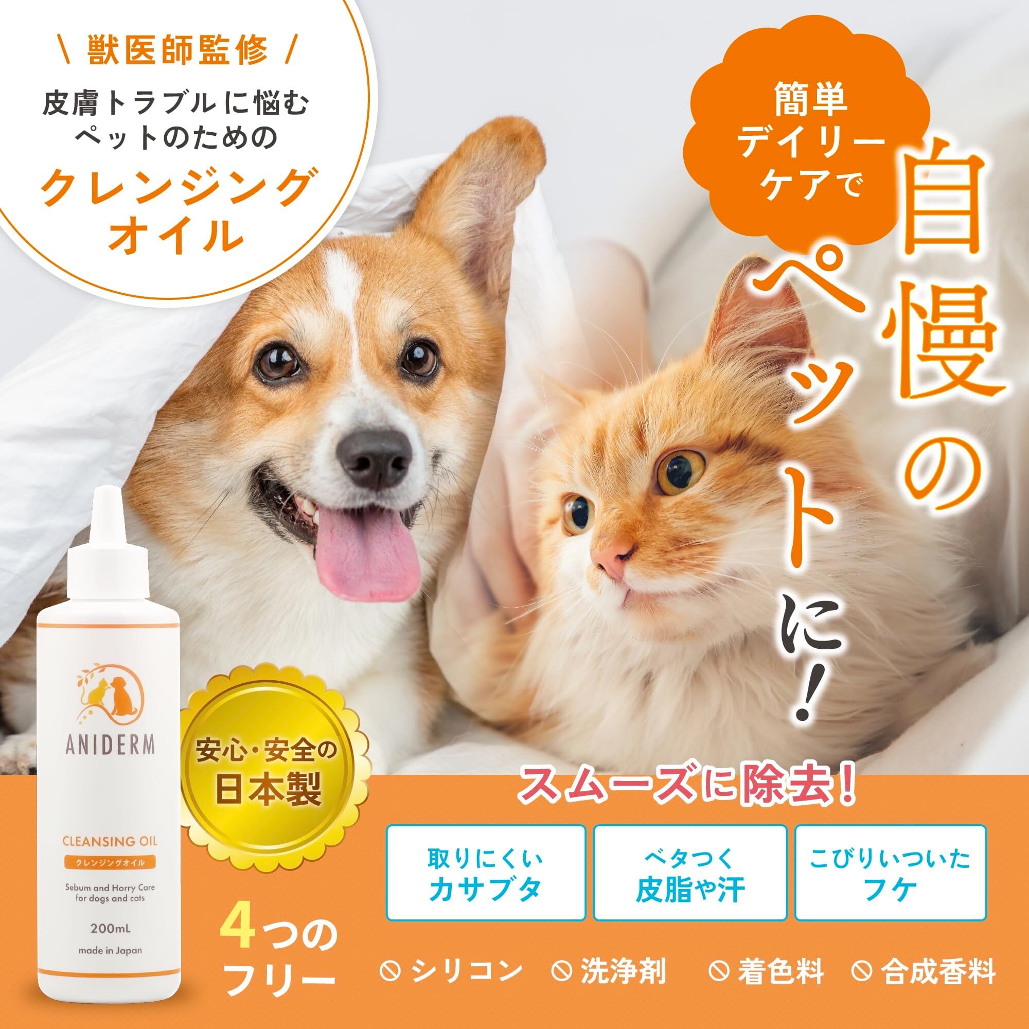 【在庫処分】【この一手間でシャンプーが変わる!】 ANIDERM クレンジングオイル 犬 猫 肌 トラブル フケ 痒み 低刺激 脂漏 ベタつき アレルギー マラセチア 薬用 皮膚炎 国産 獣医師監修 200ml 3本セット (3本セット) | wakuwakuland