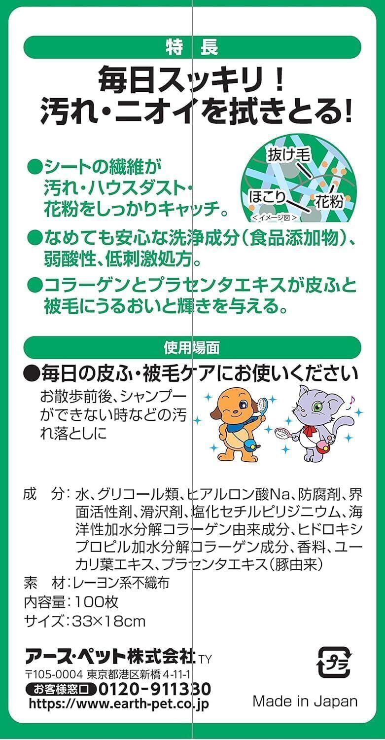 吸収力に優れた素材: うるおう吸収体を配合し、ペットの毛並みをしっかりと拭き取ることができます。