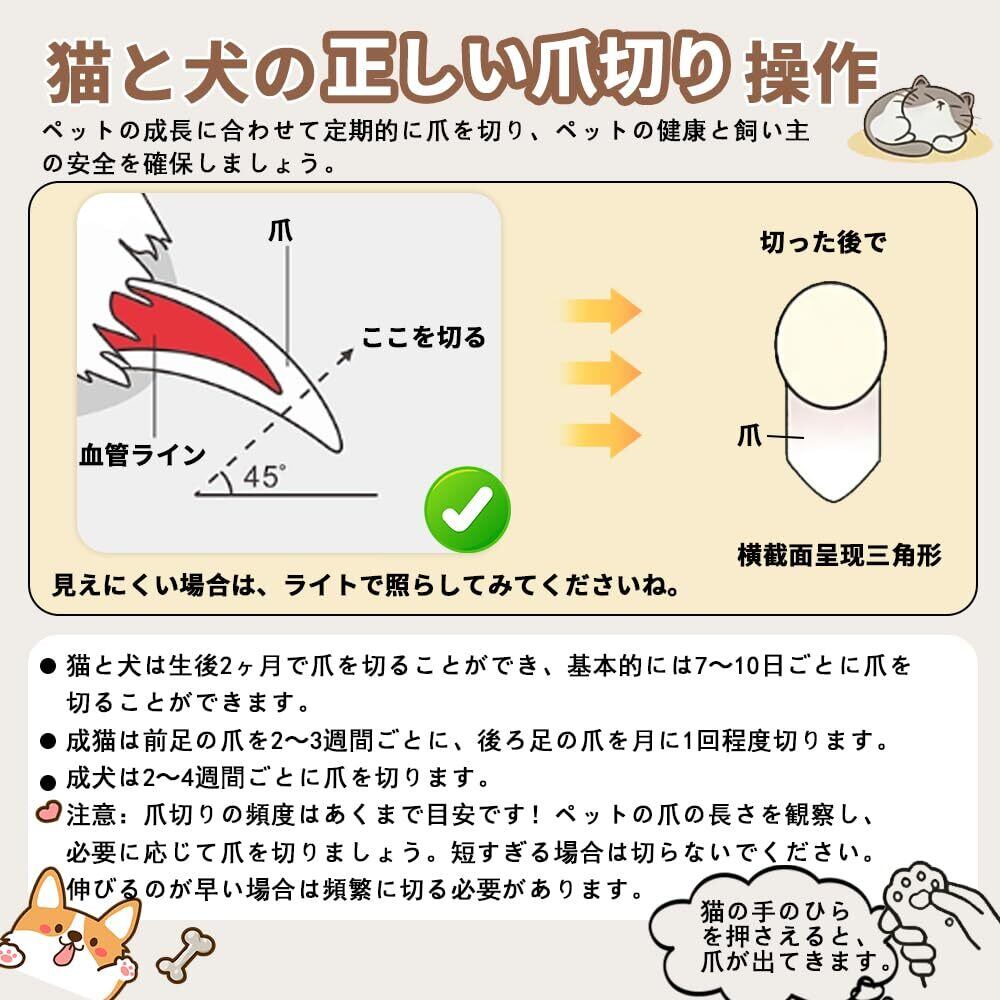防飛散設計:透明で視認可能な防飛散収納カバーを備えており、切った爪が飛び散るのを効果的に防ぎ、環境を清潔に保ちます。特に小さな子供がいる家庭に適しており、誤食のリスクを減らします。使用後は保護カバーを取り外すだけで簡単に処理できます。小型で軽量、持ち運びに便利で、いつでもどこでもペットの爪をトリミングできます。
