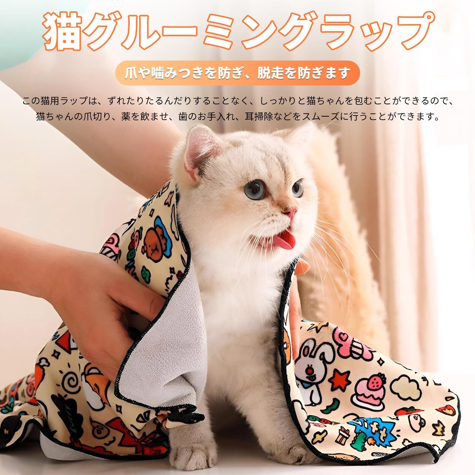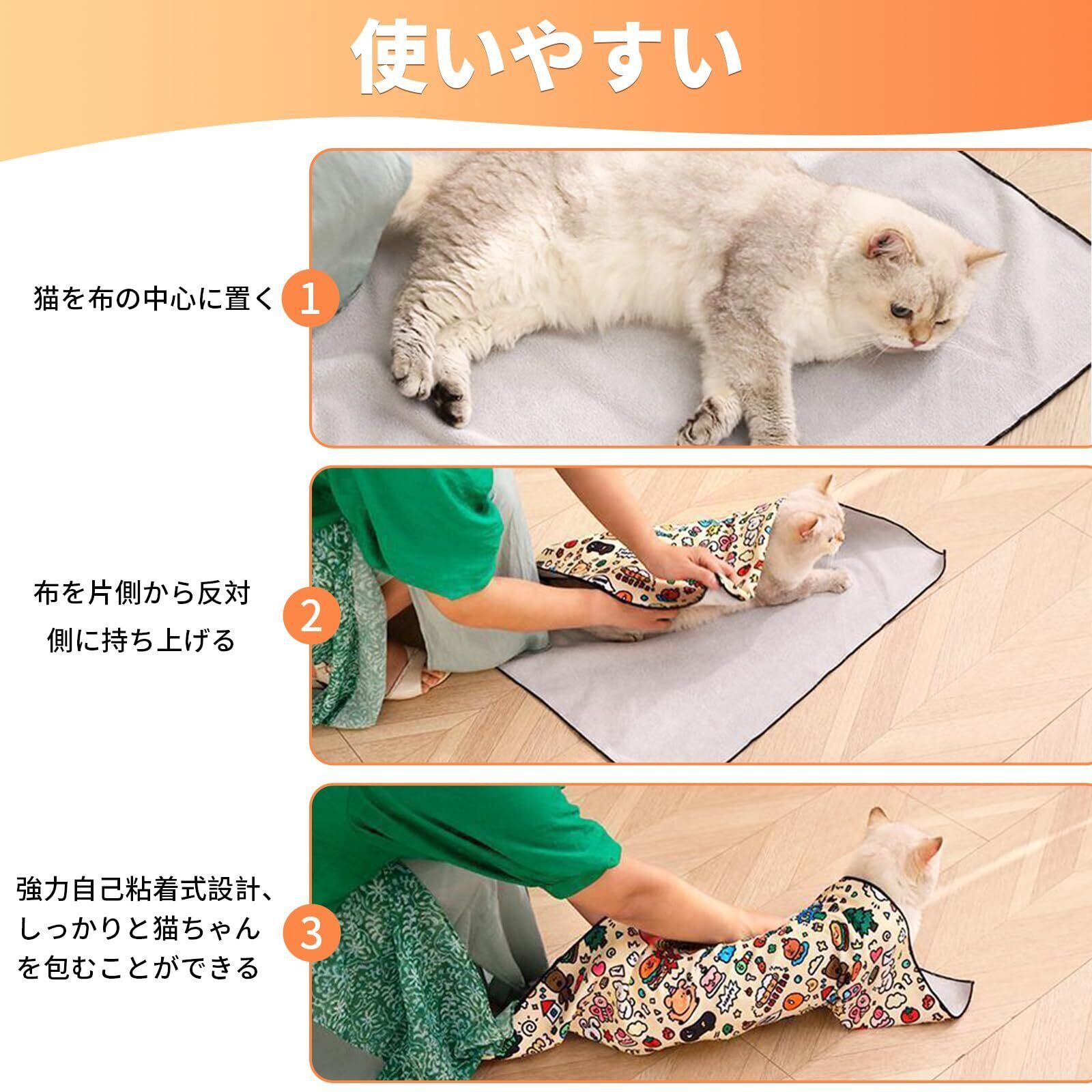 【特価商品】Seiunn 猫グルーミングラップ 猫のお風呂バッグ 猫用ラップ 猫用ベルクロ生地ラップ 自己粘着性 操作簡単 多用途 耳掃除 注射 シャンプー 点眼 猫 爪切り 暴れる 対策 引っかき傷防止 脱走防止 55*55cm | wakuwakuland