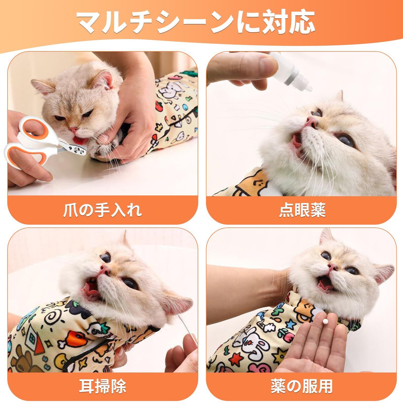 【強力自己粘着式設計】この猫のお風呂バッグは、ずれたりたるんだりすることなく、しっかりと猫ちゃんを包むことができるので、猫ちゃんの爪切り、薬を飲ませ、歯のお手入れ、耳掃除などをスムーズに行うことができます。