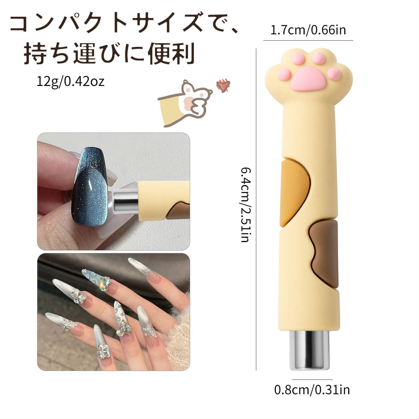 【高品質の素材】高品質のシリコン+防錆加工マグネットの二重構造。ぷにぷに肉球とぎハンドル部分はシリコンで完全に保護されており、肌触り良く、持ち運びも簡単です。落下衝撃に強く、安定した磁力、ネイル用品として長寿命を実現。