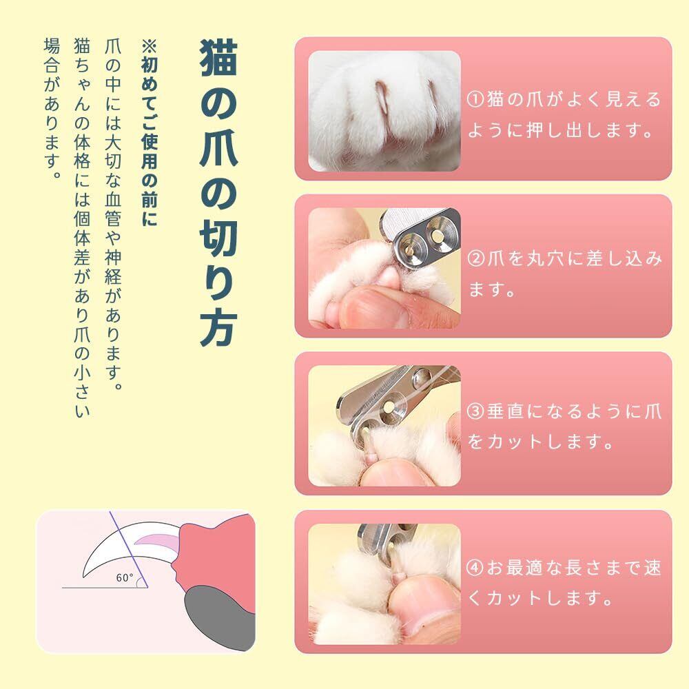 【安全な丸穴タイプ】安全な丸穴設計猫の爪の形に合わせた丸い穴デザインで、ぶれることなく安定的にカットでき、猫の爪の切りすぎを防ぐはさみです。2つの異なるサイズの穴は、実際の状況に応じて使用することができます。初心者も使えます。