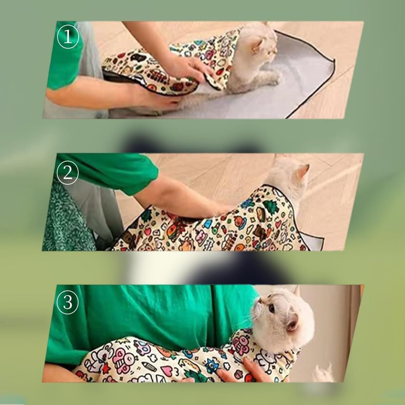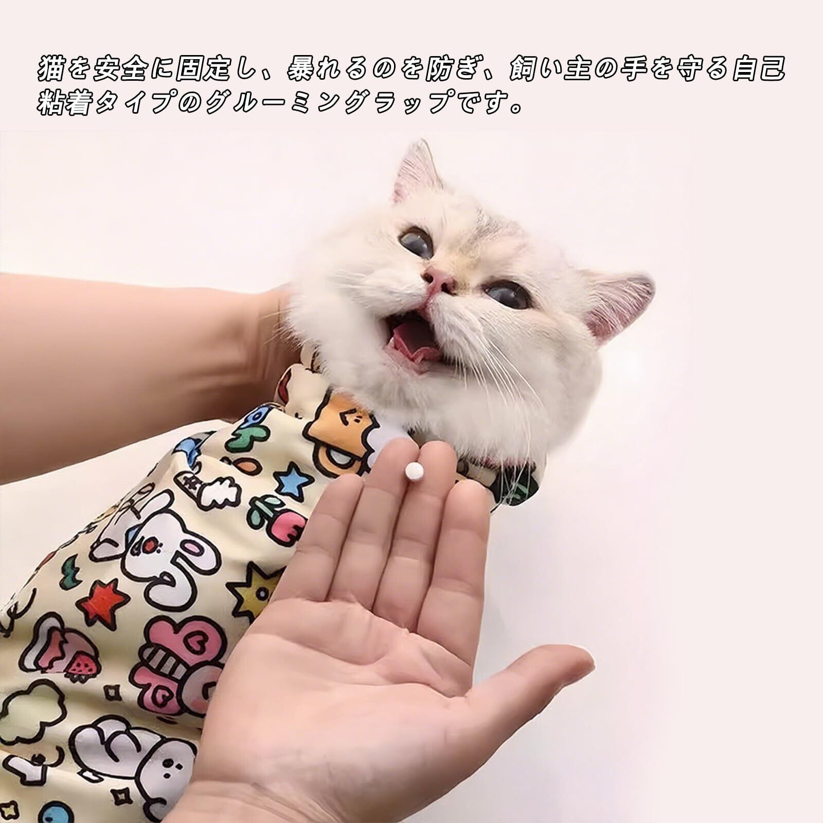 【自己粘着設計】猫を安全に固定し、暴れるのを防ぎ、飼い主の手を守る自己粘着タイプのグルーミングラップです。