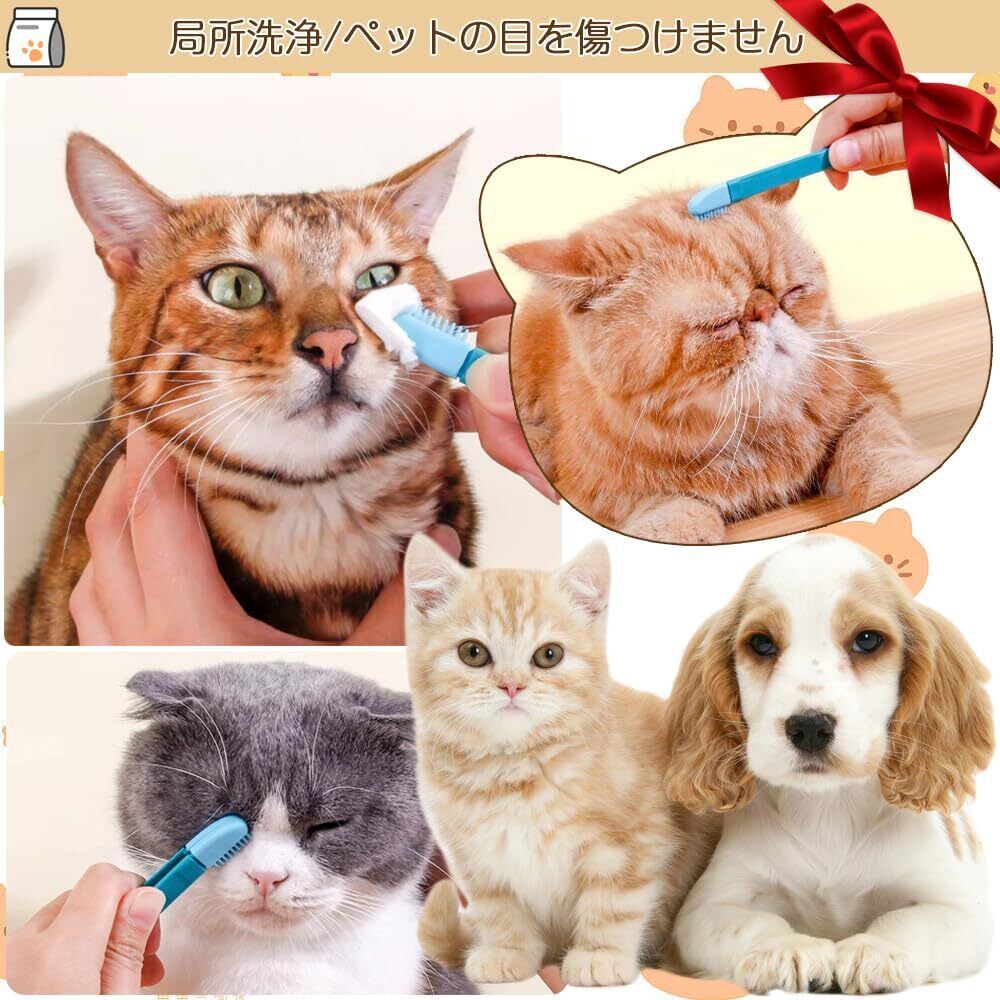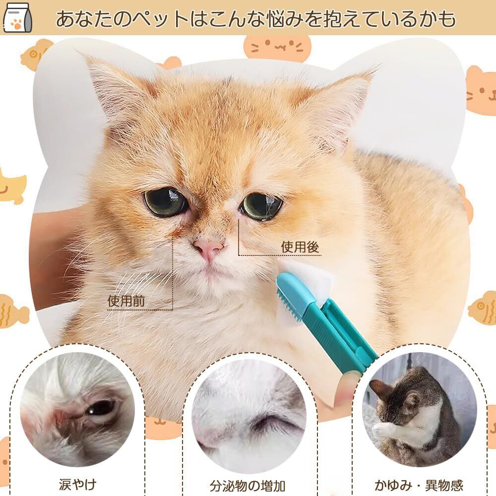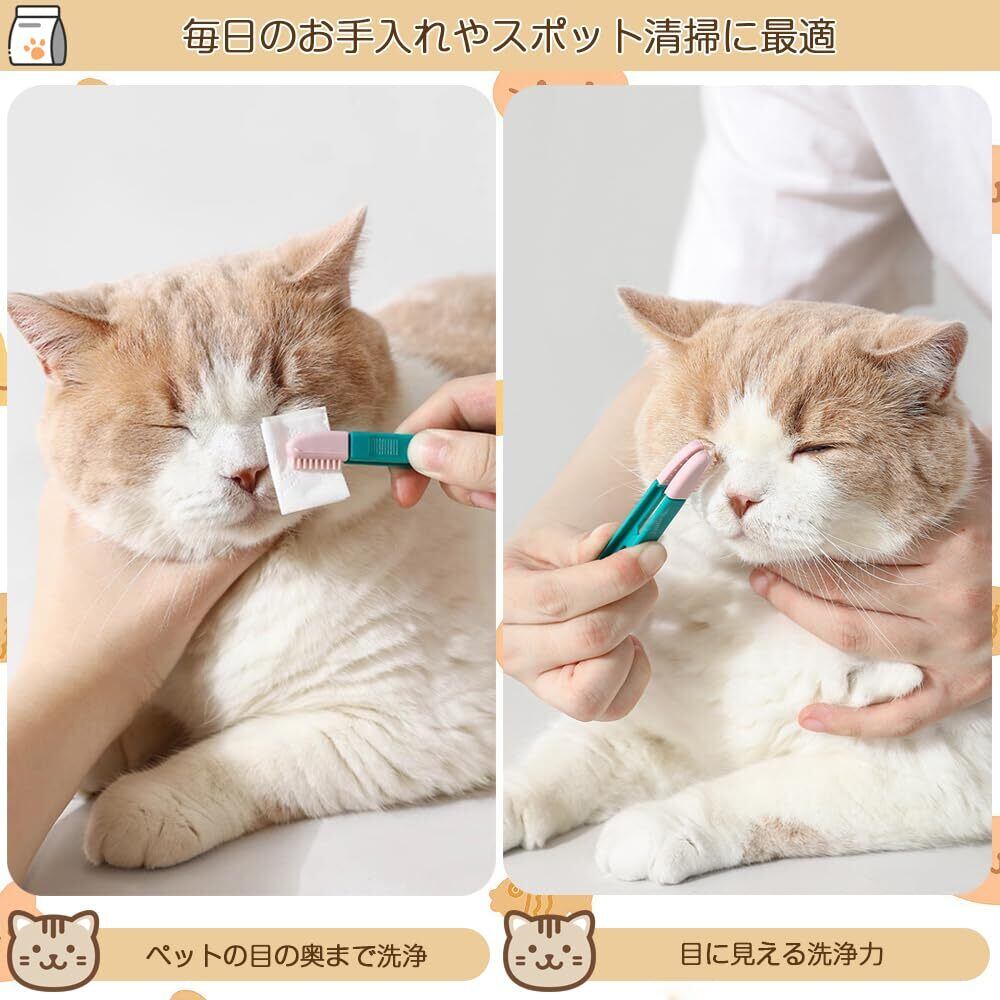 ソフトブラシ+目やに拭き:柔らかいブラシとペットに安全なウェットティッシュを使って、清潔で衛生的な方法で目を拭きます;ソフトブラシ+耳拭き:ソフトブラシは、ペットの耳拭きにも使えます;ソフトブラシ直接使用:毎日のお手入れやスポット清掃に直接お使いいただけます。