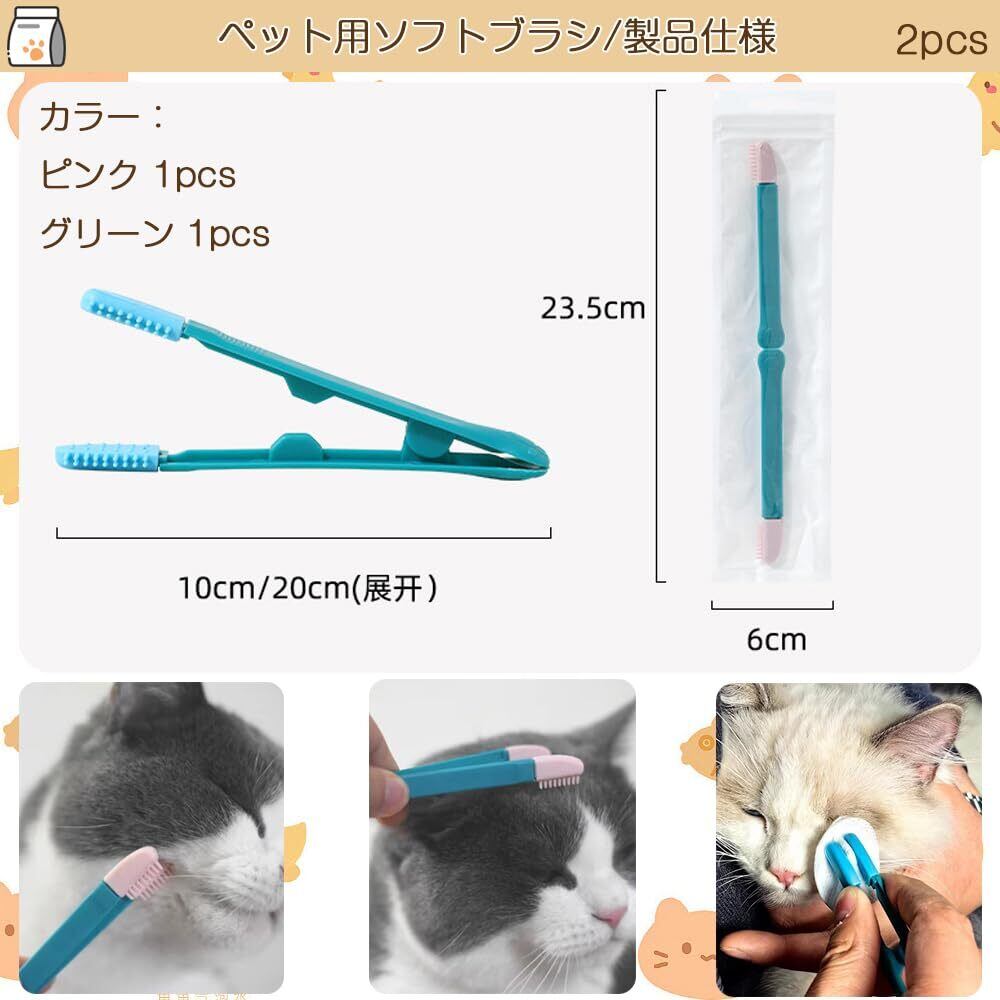 セット内容:ペット用ソフトブラシ2本セット;カラー:ピンク 1本+グリーン 1本;このクリーニングブラシは、ペットを傷つけない柔らかい毛のPP素材でできています。そのため、安全で安心してお使いいただけます。