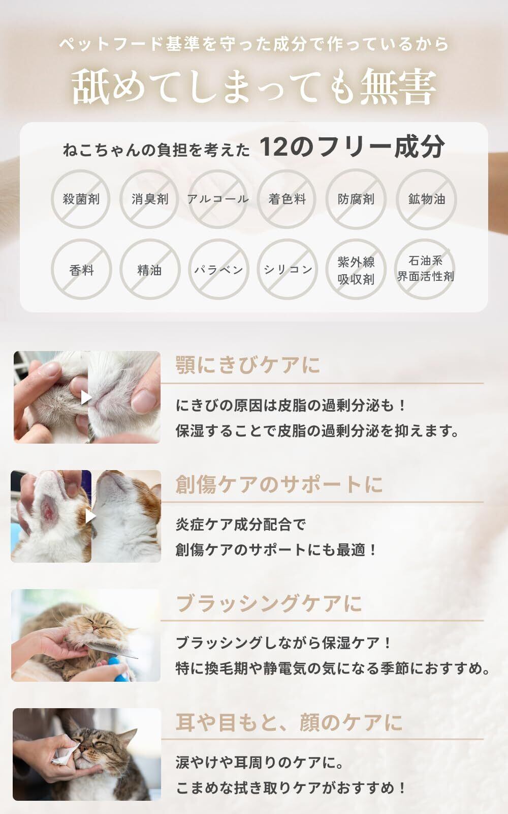 薬剤師×獣医皮膚科専門医×昭和大学の共同研究開発。猫を愛する医療チームが本気で猫の皮膚を徹底研究し開発しました。■猫の皮膚は人間の1/3の薄さといわれます。そんな超敏感肌な猫ちゃんのための高保湿スキンケア。