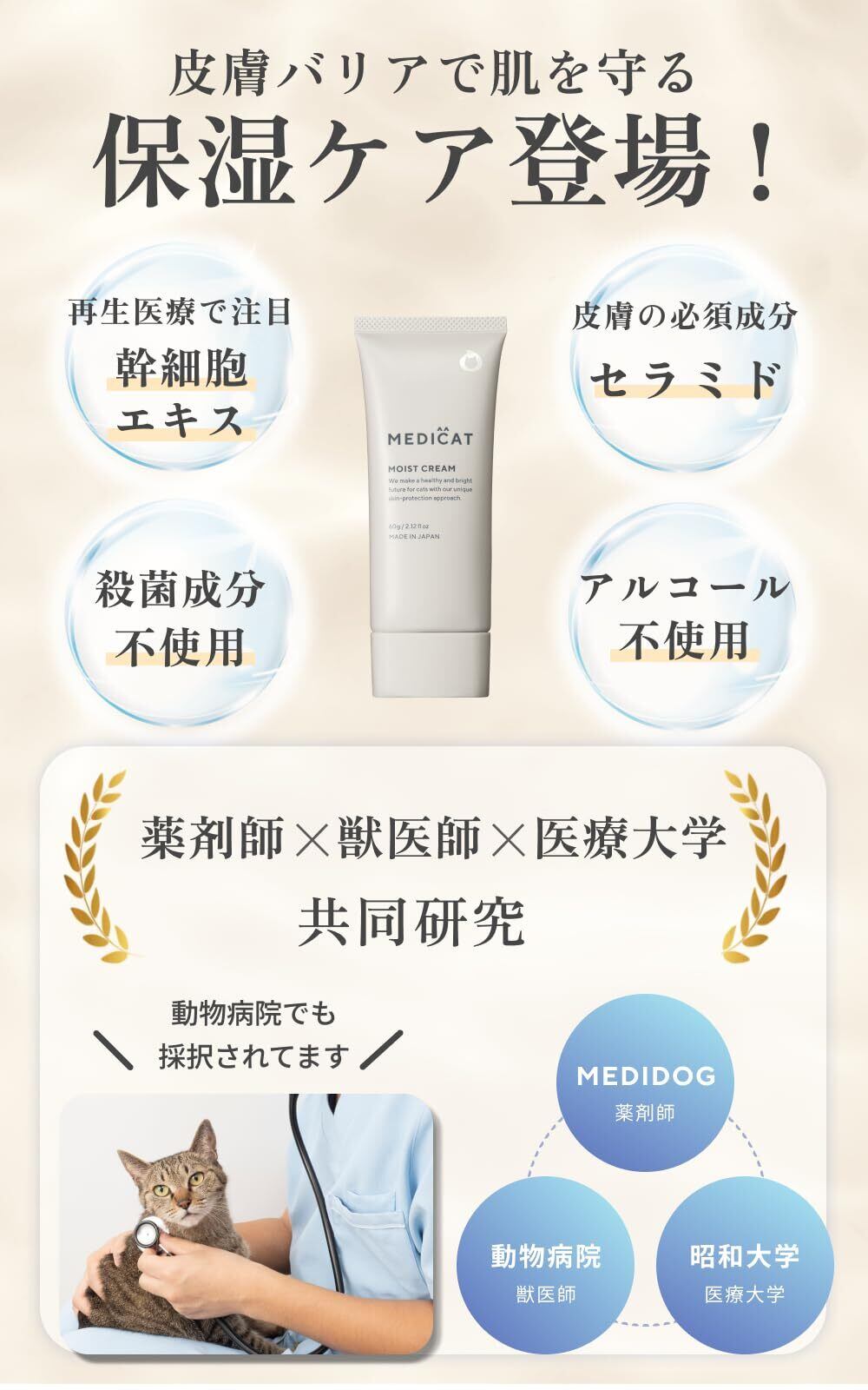 [獣医師・薬剤師監修]猫専用 皮膚ケア MEDICAT 保湿クリーム 無香料 肉球 ニキビ ブラッシング クレンジング ふけ かゆみ カイカイ 肌荒れ 乾燥 除菌 毛並み 抜け毛 静電気 保湿