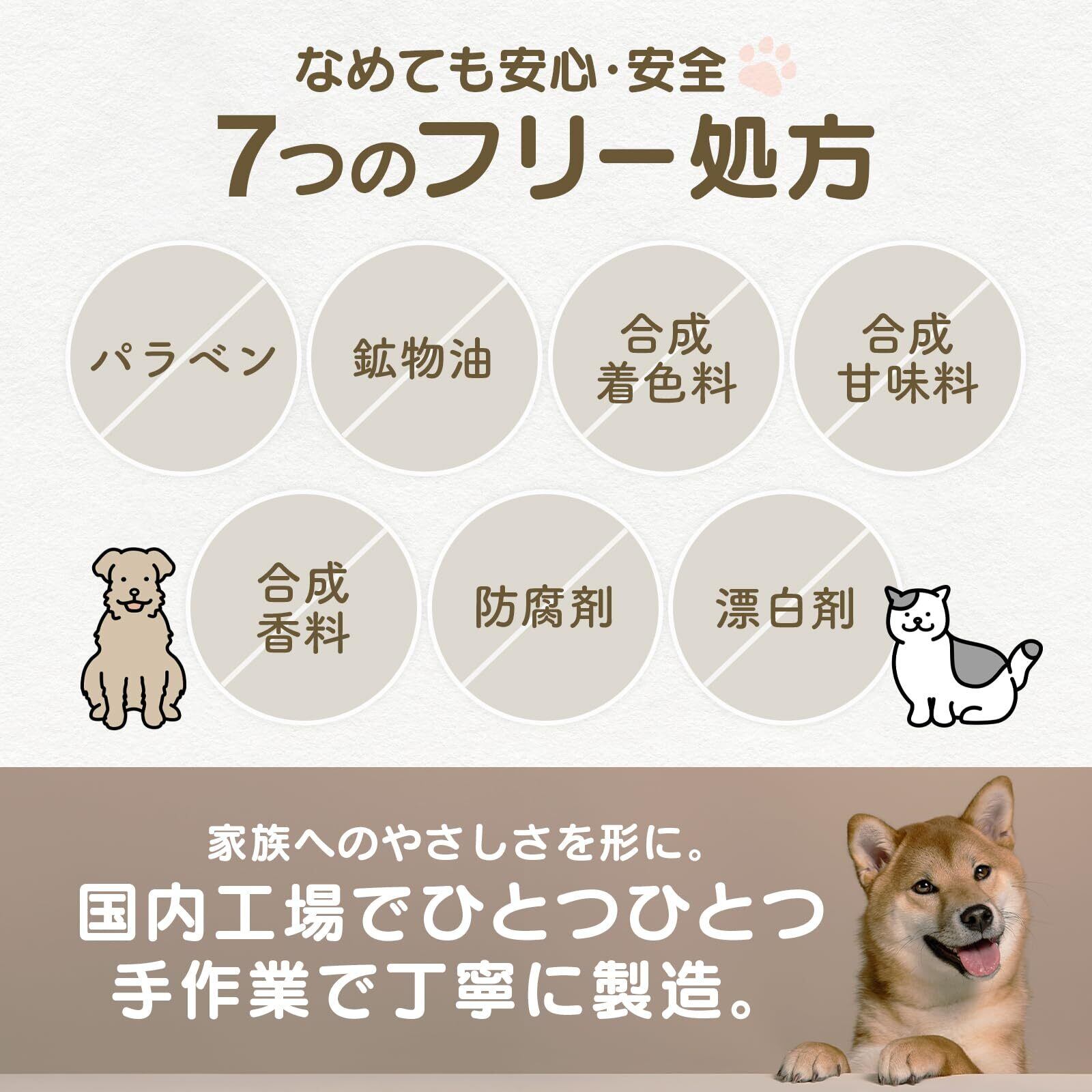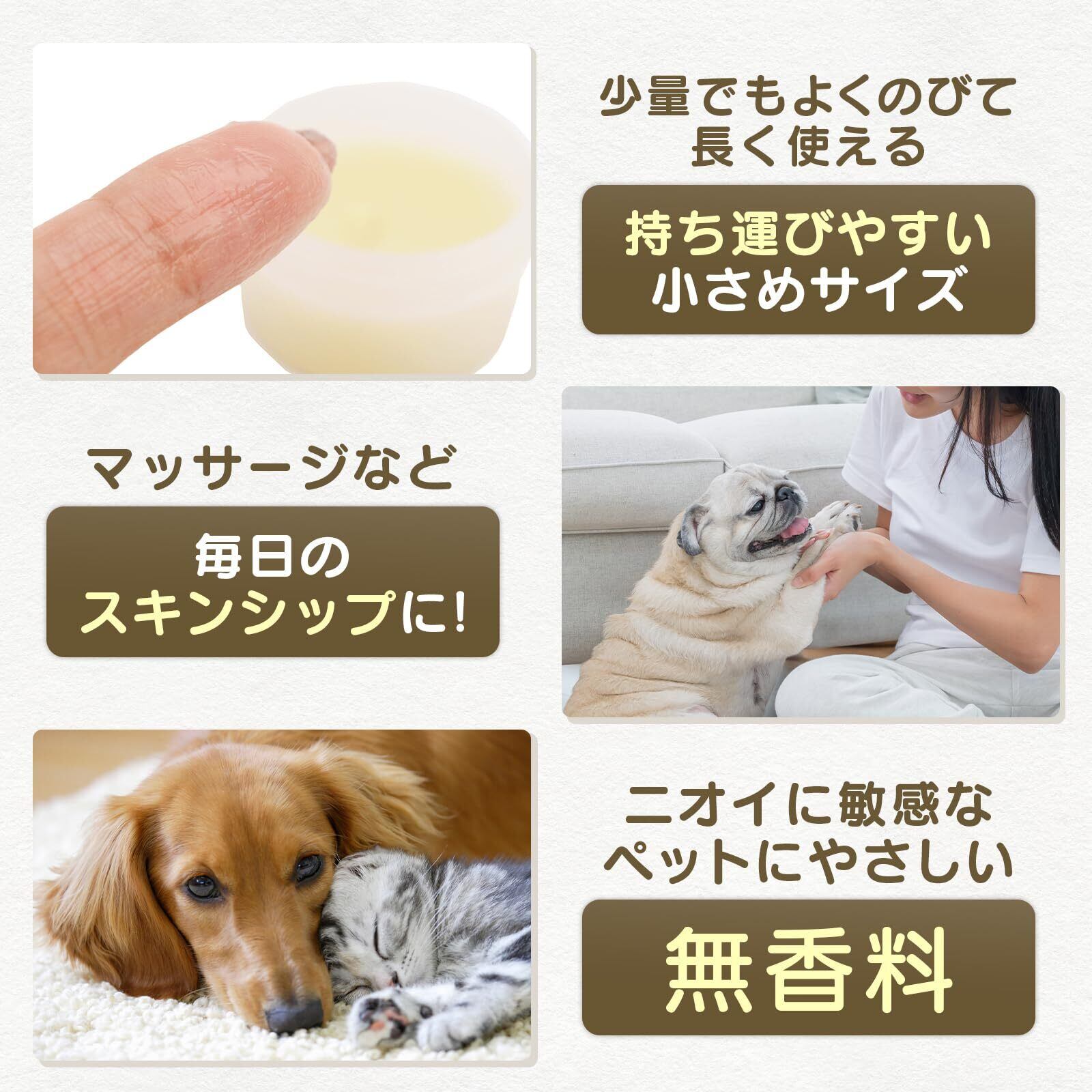 ・グレープシードオイルと蜜蝋のみを使用し、ペットが舐めても安心・安全! ! ・クリームにベタベタ感が無く、さらっとしておりグレープシードオイル、蜜蝋ともに主に女性の化粧品に使用されることが多く肌の老化防止効果、保湿効果、除菌効果、消炎効果が期待できます。