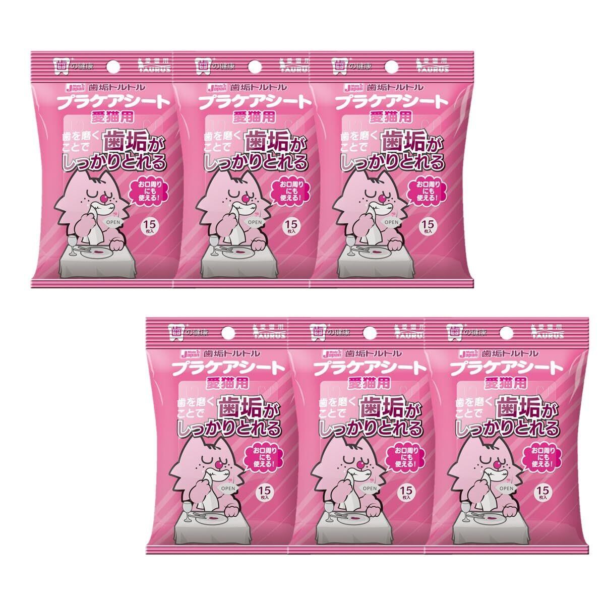 トーラス ペット愛猫用 歯みがきシート プラケアシート 15枚入り 6個セット