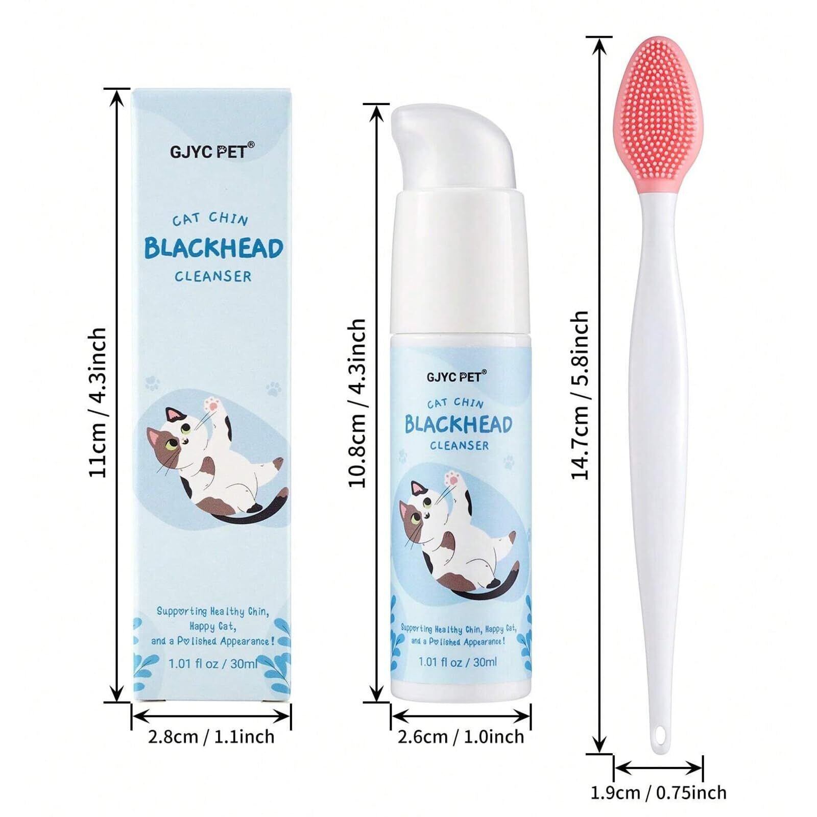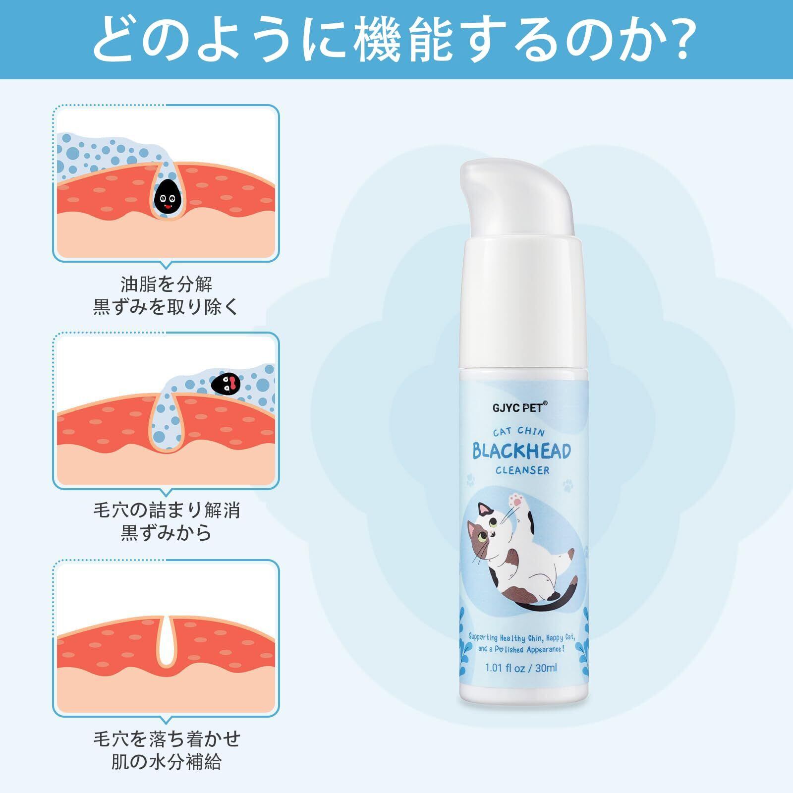 GJYC PET 猫 あごニキビケア 猫の黒ずみ除去剤 シリコンブラシ付き 毛玉取り対応 無添加・保湿 毎日使い デリケートなあご専用 優しくクリーニング 被毛ツヤケアも同時に 30ml
